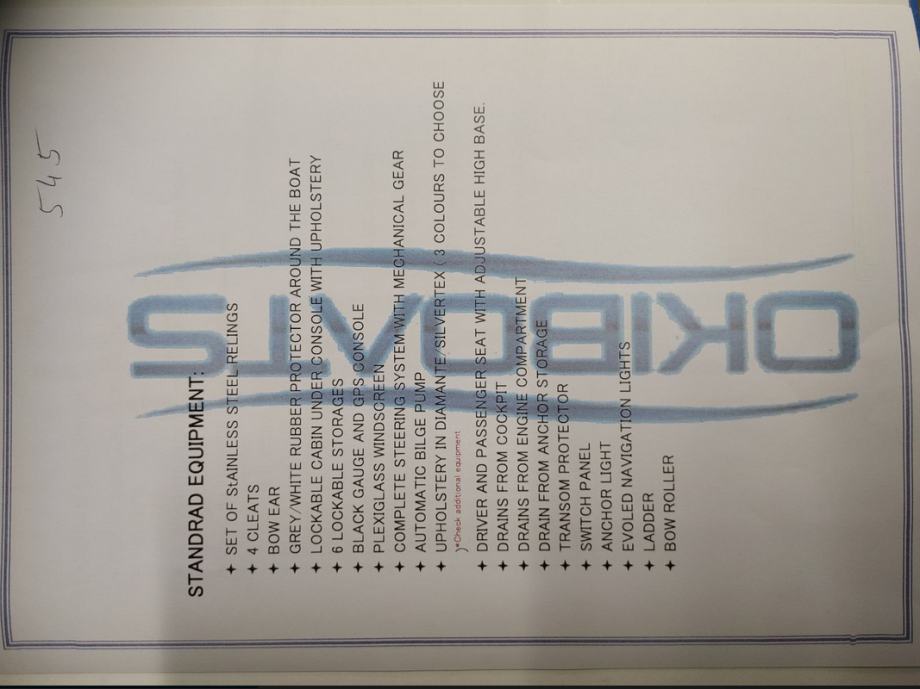 Na slici možete vidjeti službenu kompletnu standardnu opremu plovila Barracuda, proizvođača Okiboats.
