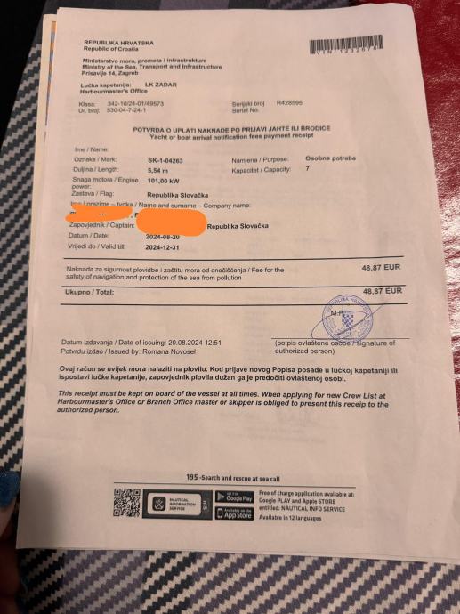 Brod u odlicnom stanju. Ulozeno puno truda, vremena i novaca. Koristen samo u privatne svrhe.