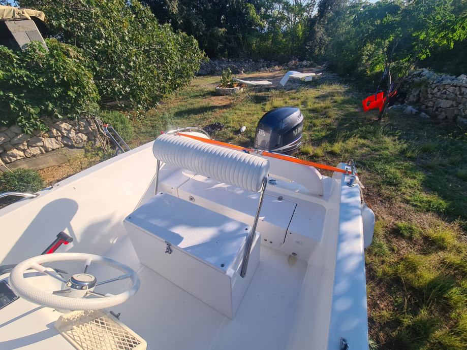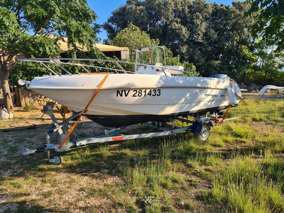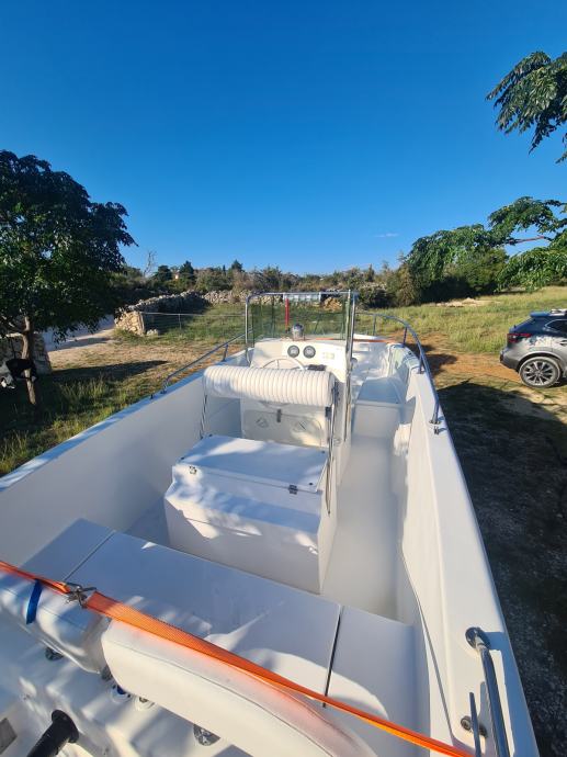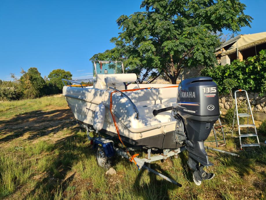 Bellingardo sea ghost duzine 5,65 sa motorom yamaha 115 ks cetverotaktna.Brod u super stanju sa svim jastucima.Veliko suncaliste sprijeda,inox bimini tenda,dupli akumulatori,dupli inox rezervari po 40 litara,separator vode za dovod goriva,presvlaka za konzolu,vanjski tus.Yamaha 115 ks sa cca 550h,napravljen servis,promjenjeni cinkovi,impeler,ulje u nozi(svi dijelovi i ulje original yamaha)odlican motor sa malom potrosnjom.Novi antifouling premaz hempel TECCEL.Uz brod ide zimska cerada i prikolica ellebi 2007 g.Brod se spusta u more sa dizalicom tako da se prikolica ne stavlja u more.