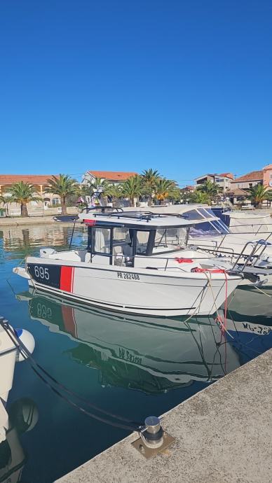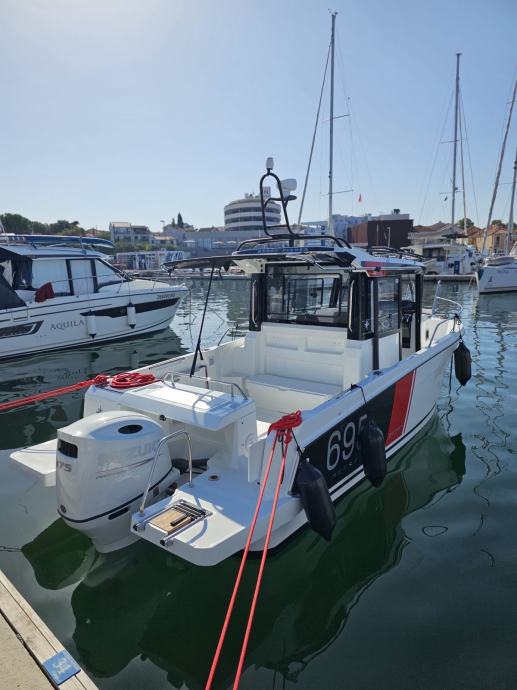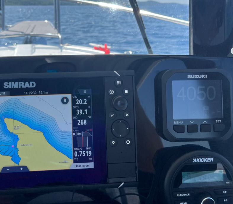 Navigacija Simrad NSS9, muzika Kicker, traster, sidreno vitlo, protočni wc, izvlačiva tenda, inox špirun ( račji kljun) s rukohvatima.