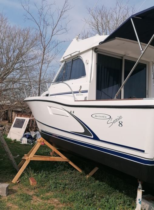 Beneteau Antares Serie 8, 1994 god., motor Volvo TAMD 41 sa 147 kW (200 ks) sa 1550 radnih sati. Brod je kompletno renoviran. Prednja kabina sa duplim ležajem, salon se pretvara u dupli ležaj, kuhinja sa dvostrukim plamenikom i hladnjakom, morski ručni WC.