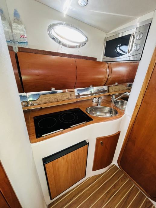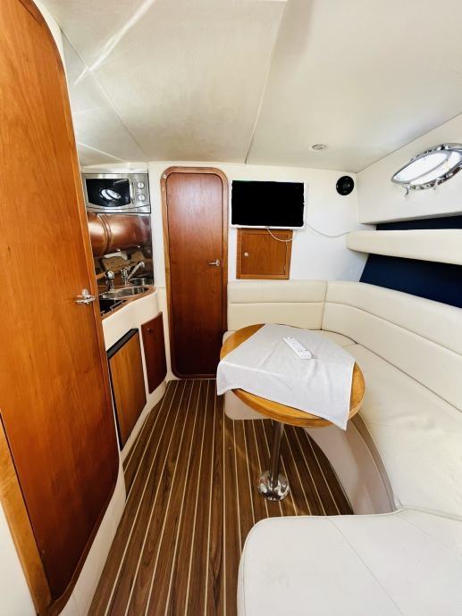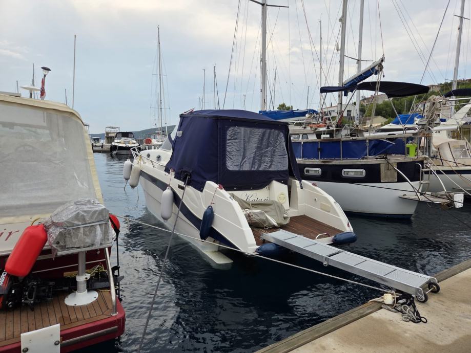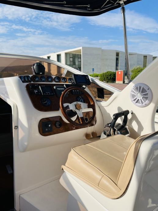 Bozzato Solaria 250, 2006g., 2x Mercruiser 4.3, pramčana kabina odvojena vratima (dvostruki ležaj), kuhinja/dnevni boravak ugradbeni frižider, indukcijska ploča mikrovalna pećnica, sudoper, TV/radio (dvostruki ležaj), pomoćna kabina (jedan ležaj), TWC, velika kutna garnitura na palubi (dvostruki ležaj), kuhinja na palubi (ugradbeni frižider, plinski štednjak, sudoper), bimini potpuni (sve stranice), velika krmena platforma (2mx1m) s tušem i aluminijskim mostićem, Bow Thruster, el. sidreno vitlo s brojačem lanca, navigacija, autopilot (Raymarine), ugrađeni ispravljač12/220V i punjač, 3 akumulatora (2x100 +200AH), Solar 180W, napravljeni veliki servisi na mašinama i nogama (Alpha I Gen II), registriran do 2027., područje plovidbe A III