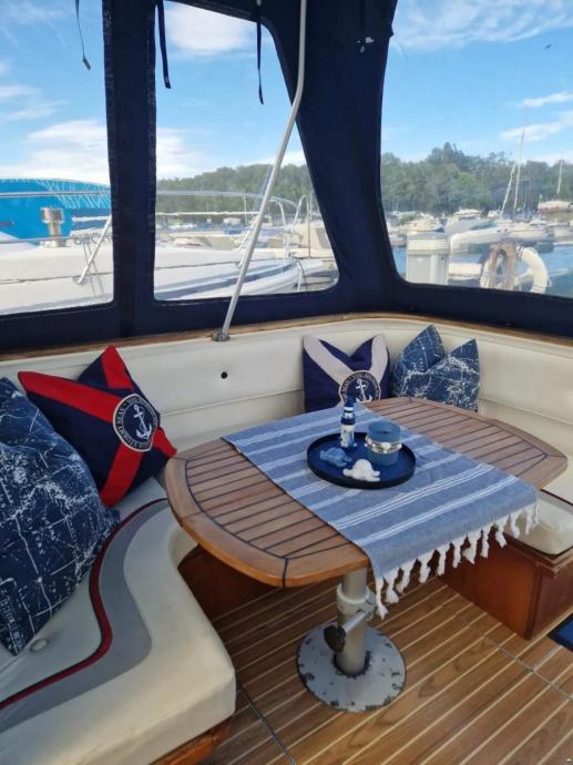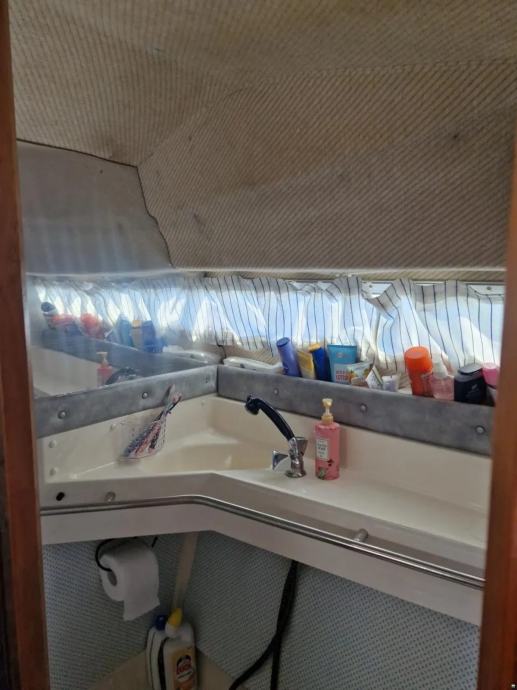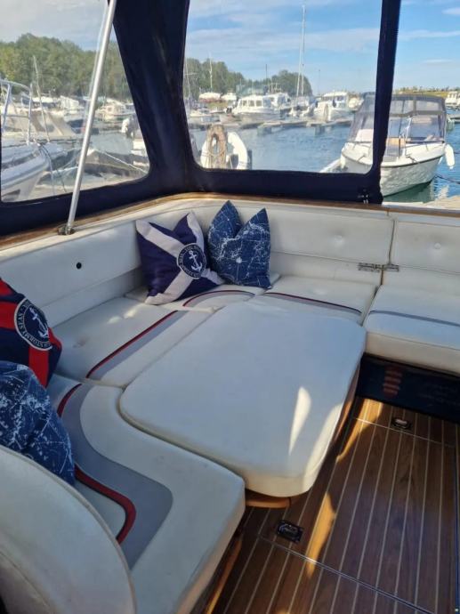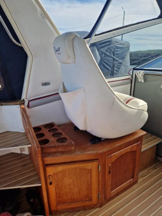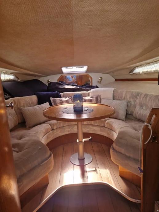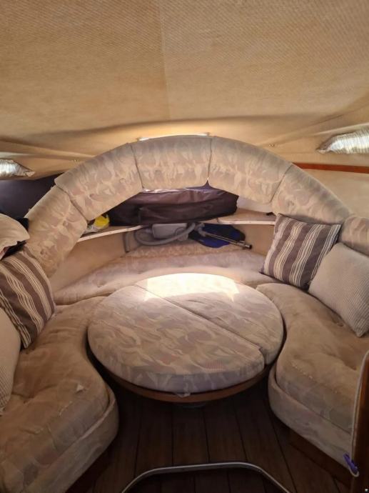 U brodu su dvije kabine, glavna i pomocna za ukupno 4 do 5 osoba. Ima stol na zadnjem dijelu broda, koji se pretvara u lezaj.