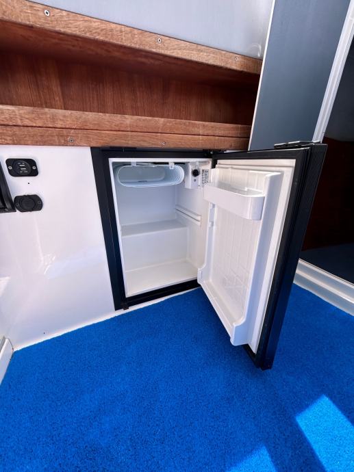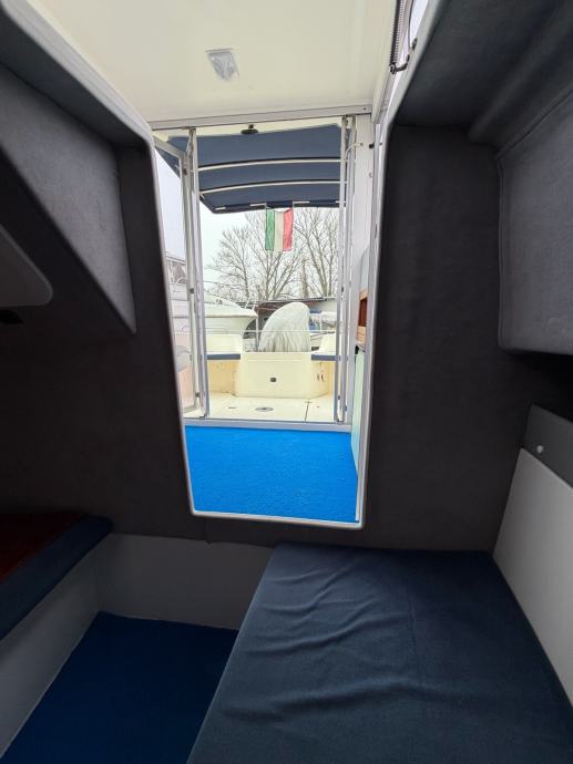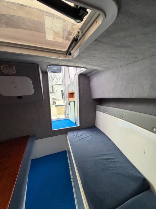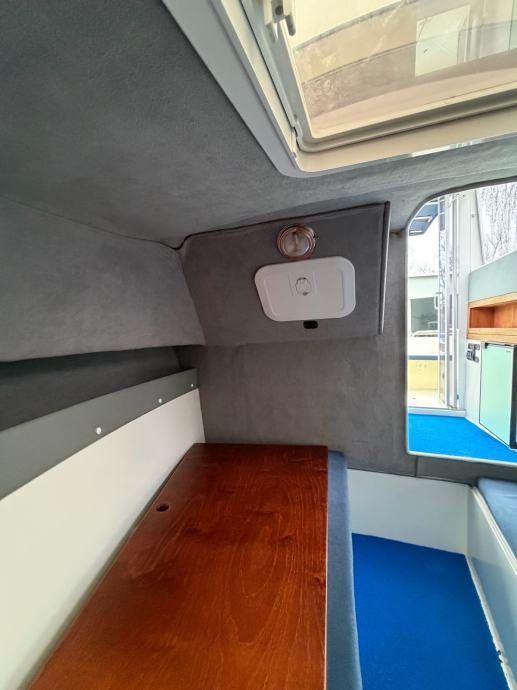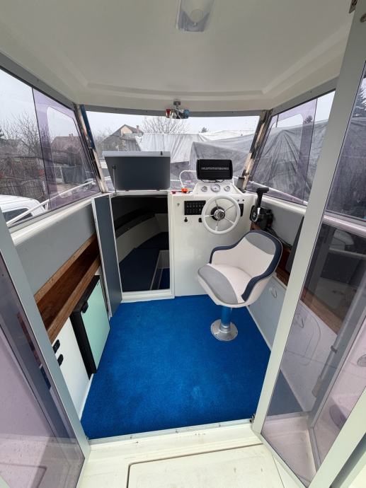Oprema: električno sidreno vitlo, 2x Odyssey 2150 baterije, Bosch anti-discharge, Humminbird Helix 10 + puna karta Dunava + Tise i Jadrana, ledeno hladni hladnjak, spremnik goriva od nehrđajućeg čelika (135 litara), integrirana bimini tenda, prednji i stražnji reflektor, podvodna i stražnja LED rasvjeta, ljestve za kupanje, utičnica od 220 V, automatska kaljužna pumpa, pokrov, sprječavanje svježih algi itd.