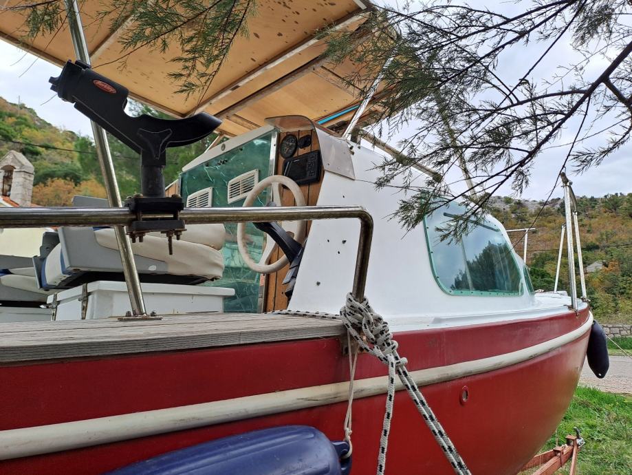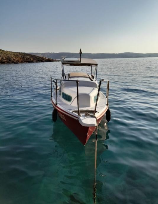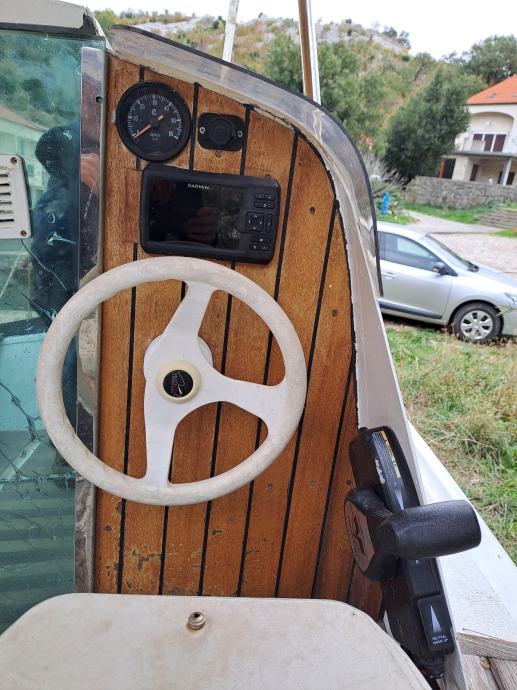 Trajno registrirana, redovito plaćena sva davanja, samoprazneci kokpit, kaljuzna pumpa, hladnjak 12V, rezervoar za vodu 70l, plinsko kuhalo, solarni panel, servisni I startni akomulator, krmeni tuš, Danford sidro, fisfinder, Garmin Striker GPS sa kamenom sondom, led rasvjeta kabine I kokpita, motor Tohatsu 20ks injktuon vrlo malo vozen.