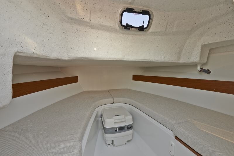 S podesivim rasporedom središnjih sjedišta, krmeni dio kokpita je prostran i privlačan, čak i kad motor radi na najvećim brzinama. Jednostavnim okretanjem okretnih sjedišta dobiva se dnevni prostor oko središnjeg stola. Svjetla i prozračna kabina ima kemijski wc, dvostruki ležaj i odjeljke za spremanje stvari. S druge strane, široka pramčana paluba idealna je za sunčanje i relaksaciju.