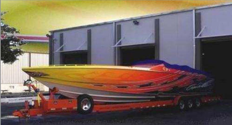 Services: european electrical system - stern tube platform painted with Cigarette logo - steering wheel with Cigarette logos – ice maker.