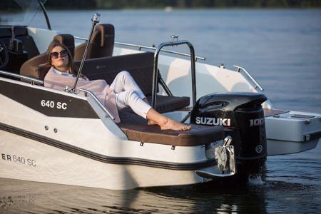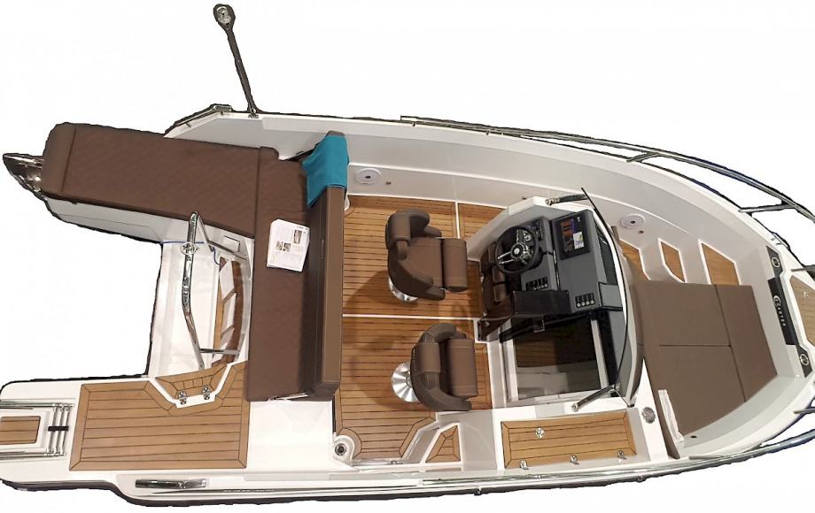 Bogata serijska oprema uključuje inovativno krmeno sunčalište jedinstveno u ovoj klasi plovila.