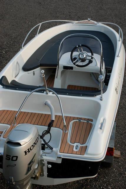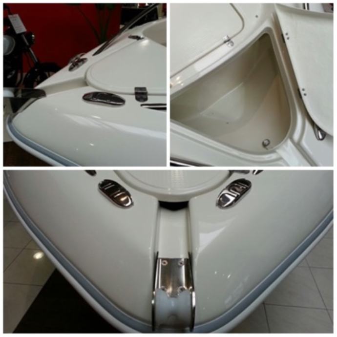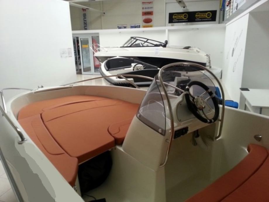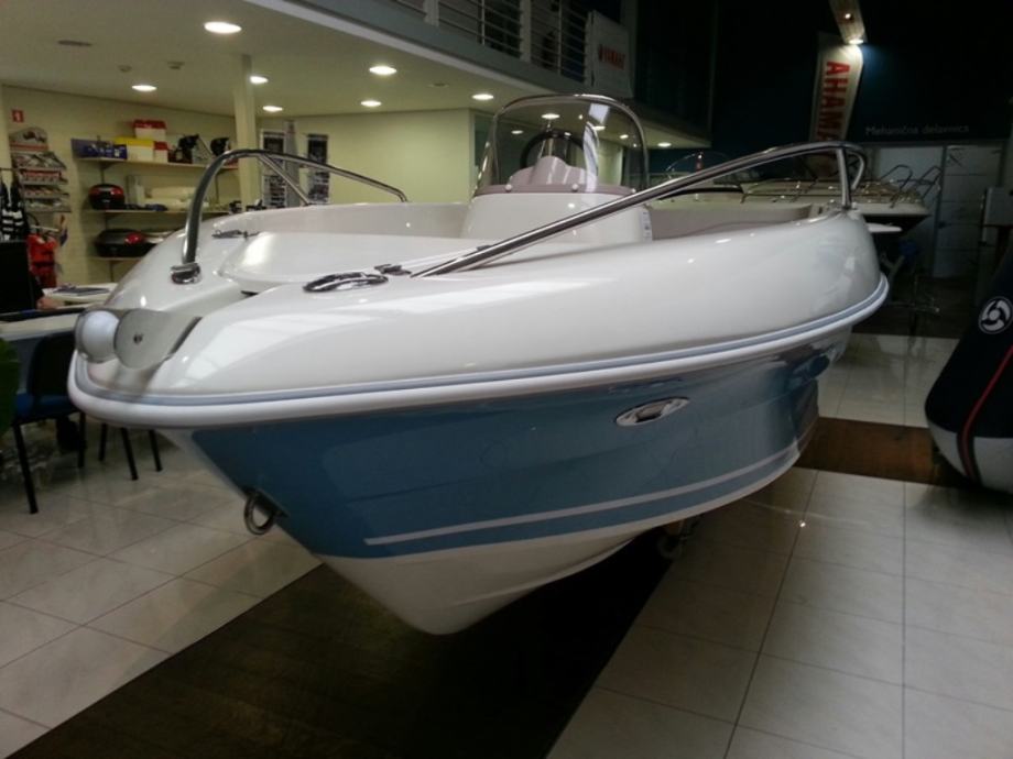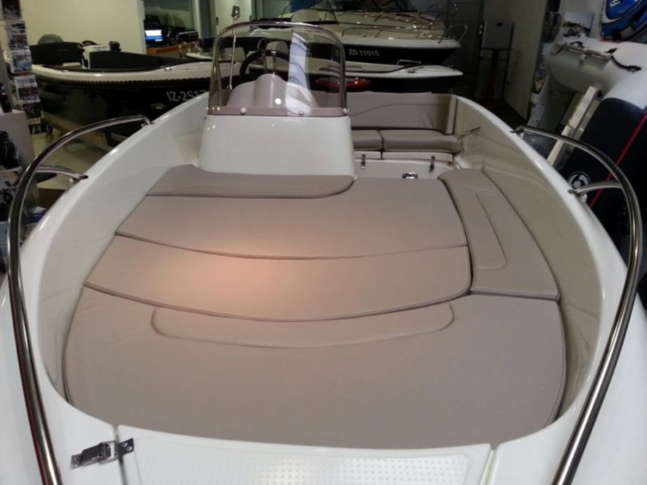 Serijska Oprema : Boja trupa po želji kupca, inox ograde, inox rukohvati, konzola sa vjetrobranskim staklom i rukohvatom, samopražnjeći kokpit, el. instalacija, glavna sklopka,tabla s prekidačima,utična 12 V, pumpa kaljužna automatska, pumpa kaljužna ručna, inox bitve za privez, inox ljestve za more, inox nosač-roler sidra.