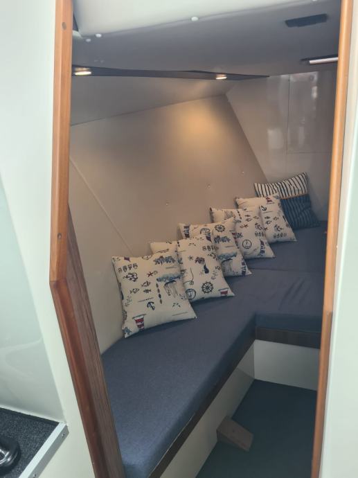 COLNAGO 35 CABIN kao nov, proizveden 11 mjesec 2019, prvi vlasnik, vozen od jedne osobe (vlasnika) cijelo vrijeme, brod bez crtice, napravljen za kombinaciju transfera i privatnih tura, od opreme, motor Cummins 6.7l 480ps, veliki sundeck za 4 5 ljudi, velika ljetna tenda preko cijele krme, stol na krmi i jastuci, GPS SIMRAD 9, (kupljena nadogradnja softvera za preklapanje GPS-a i radara, SIMRAD radar, radio stanica, led rasvjeta, muzika FUSION + 4 JL 7 inca zvucnici sa pojacalom, 13 avio siceva koznih u kabini, wc, tus....Na brodu je silikonski koper.