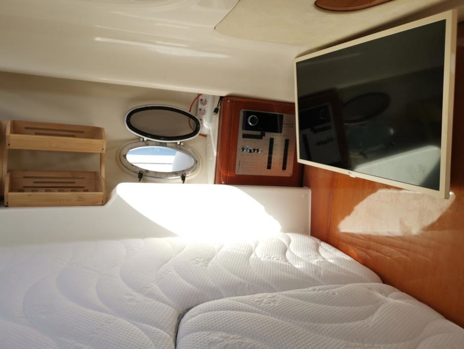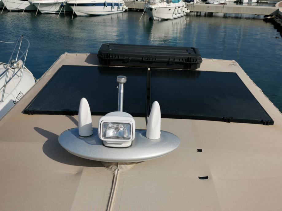 Solarni FN paneli 2x200W, inverter 230V, dva hladnjaka, LED TV 32", odvojeni WC u kabini (sa umivaonikom topla/hladna voda), madrac rađen po mjeri, mini kuhinja u kokpitu (plinsko kuhalo i sudoper), "half tower top" rađen po narudžbi sa kompletnom kamper tendom...