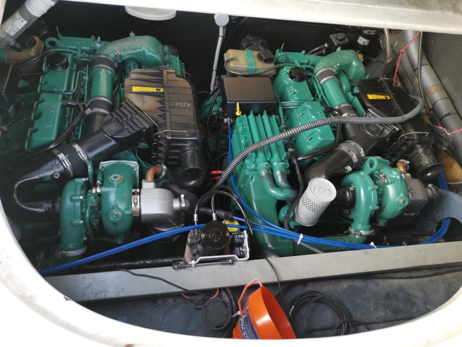 Na oba motora su zamijenjeni el.pokretači, alternatori, sajle komandi, pumpe morske vode, termostati, nove poboljšane turbine, nova inox koljena auspuha, natezači remenja, elektro kvačila kompresora (i kompresor desnog motora). Zadnji redovni servis 4/2024.