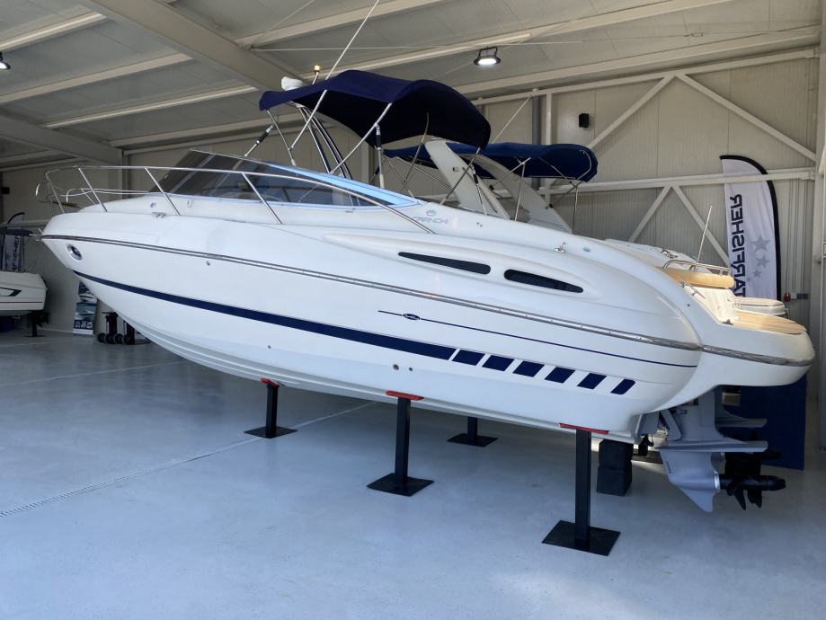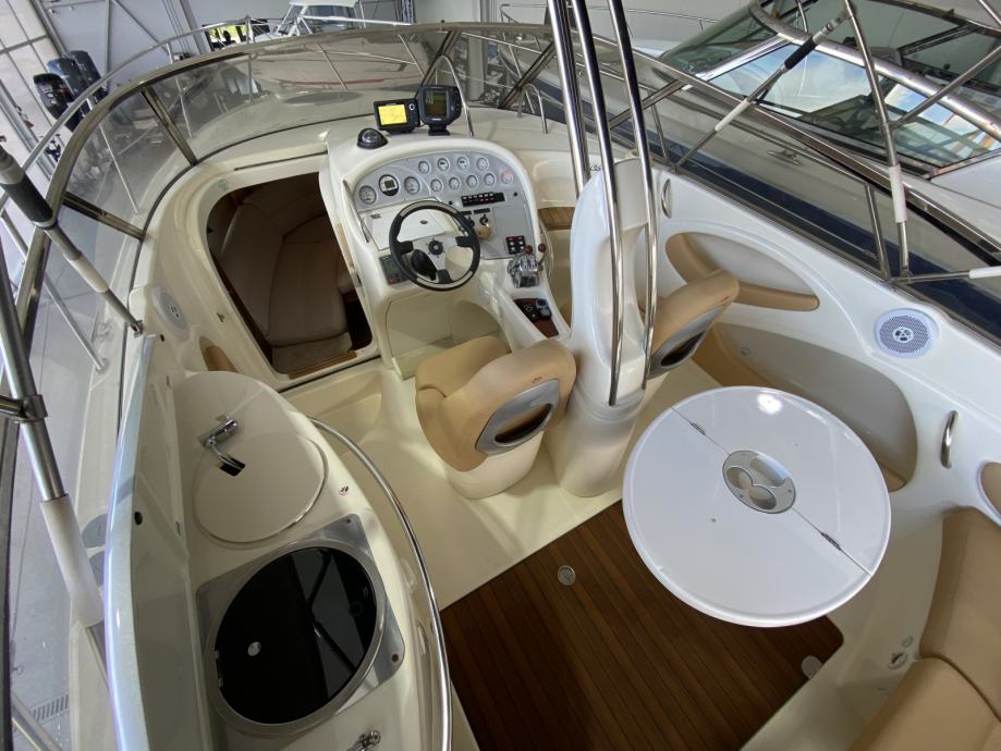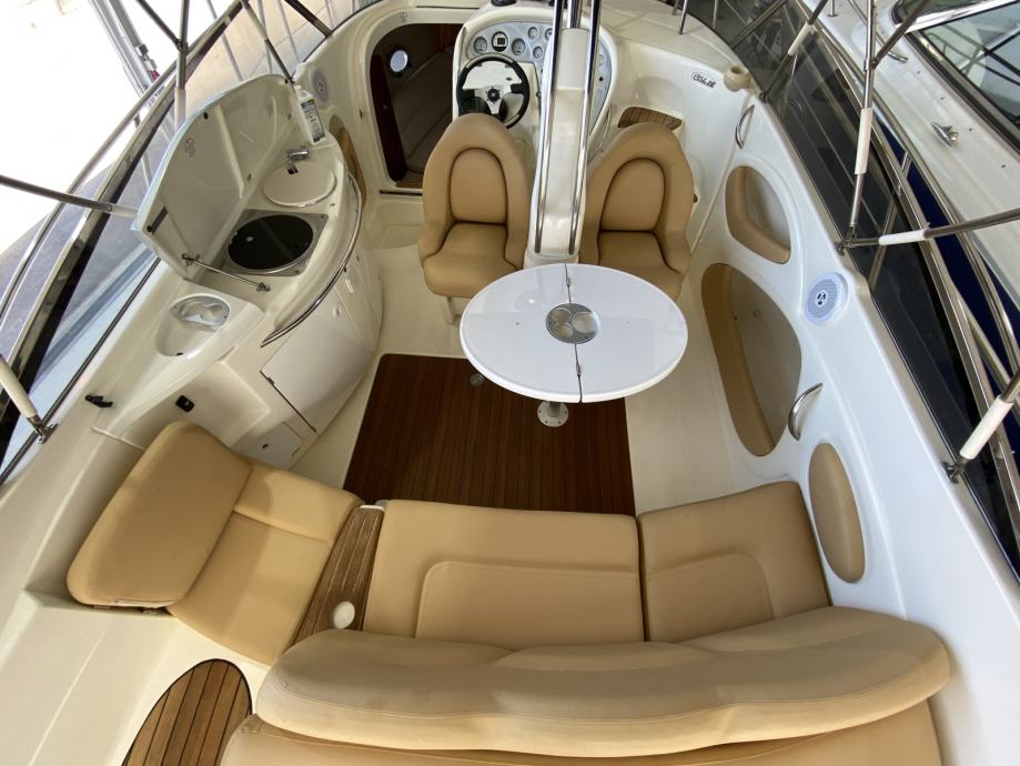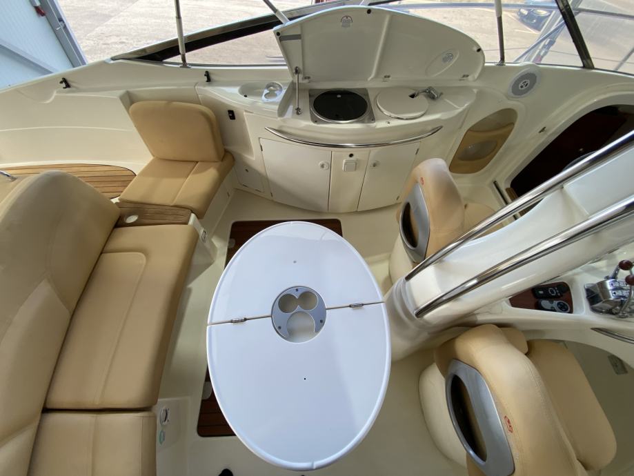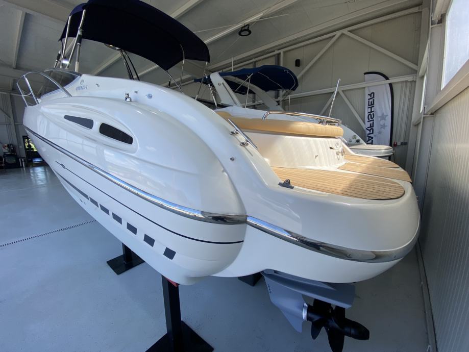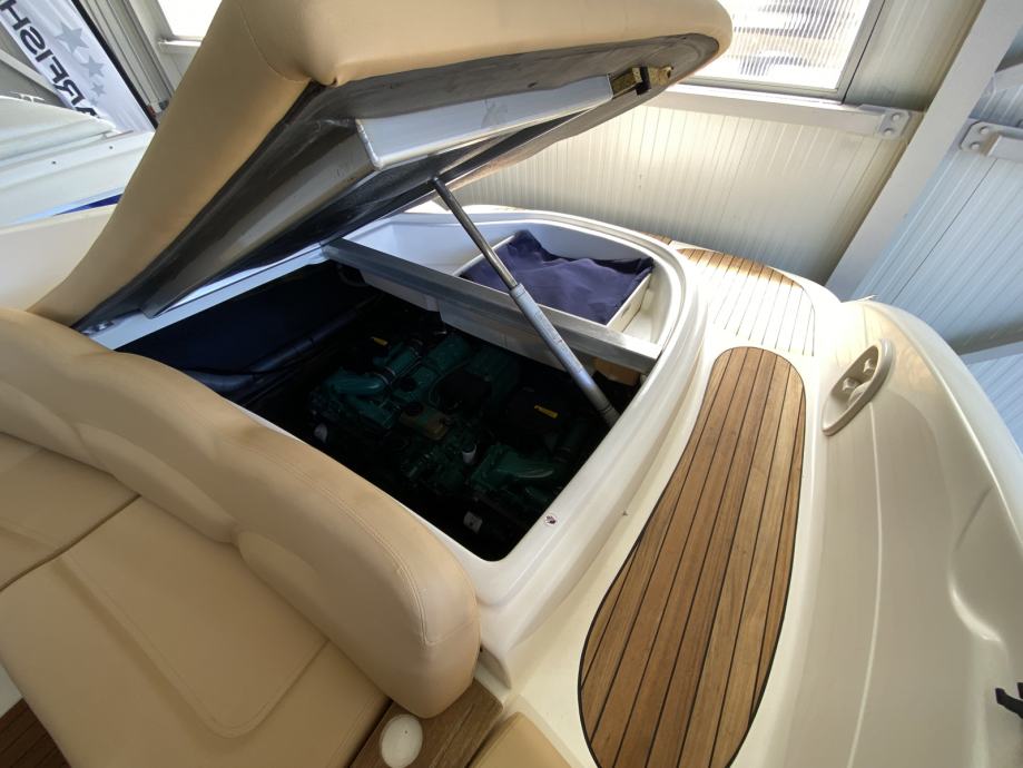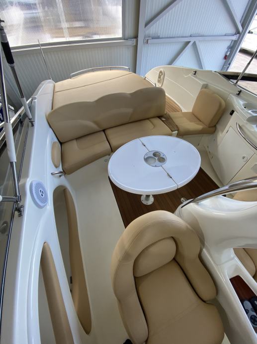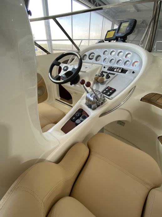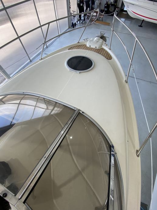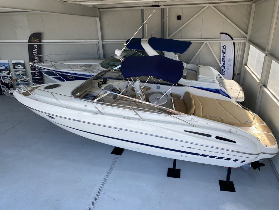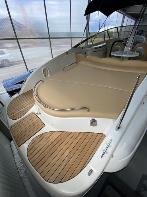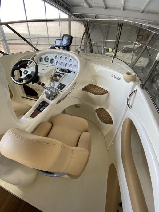 Gliser vrhunske kvalitete i izrade , spoj klasike i prestiža , vječan dizajn koji nikad neće zastarjeti a vrijednost na tržištu može samo rasti. Besprijekorno stanje sa samo 650 radnih sati , prvi puta u moru 2000 g , korišten isključivo sezonski za osobne potrebe , svake godine servisiran i skladišten u zatvorenom prostoru.Izuzetno kvalitetna diesel motorizacija koja pruža maksimalnu sigurnost, ekonomičnost i pozamašne perfomanse , putna brzina 30 milja , maksimalna cca 40 .Vrlo robustan i čvrst trup , brod teži 3 tone što garantira ugodnu vožnju po valovitom moru.Kompletno opremljen za dnevne izlete ili kraća krstarenja , velika pramčana kabina sa zatvorenom wc prostorijom , električni wc , umivaonik sa toplom vodom, mnoštvo pretinaca i ormarića.Izuzetno prostran kokpit sa kuhinjskim pultom, sudoperom i hladnjakom , plinsko kuhalo , 42 L hladnjak. Obalni priključak sa punjačem baterija ,bojler tople vode,tuš u kokpitu sa toplom vodom, potpuno nove baterije ugrađene 8/2021,Humminbird GPS i fishfinder, Raymarine autopilot, tikovina u kokpitu i na platformi, veliko sunćalište , električno podizanje poklopca motora, električno sidreno vitlo , ozvučenje sa Fusion zvučnicima i daljinskim upravljanjem, reflektor na radarskom luku sa daljinskim upravljanjem, potpuno novi bimini top + sve tende za kompletno zatvaranje kokpita, dodatan bimini top nad krmenim sunćalištem.Plovilo je izuzetno uredno i očuvano , na motorima i pogonima napravljen redovan servis i kontrola ( ulje, filteri, cinkovi , ulje trim i semerinzi , manžete na transomu , z pogoni prebrtvljeni ) , potpuno spreman za korištenje. Plovilo se nalazi u našem prodajnom salonu u Zaprešiću , isporuka na destinaciju kupca je moguća.