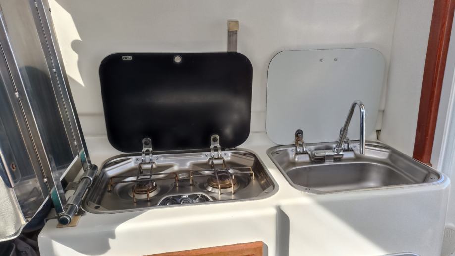 * Paluba, kokpit i krmena klupa obloženi tikovinom