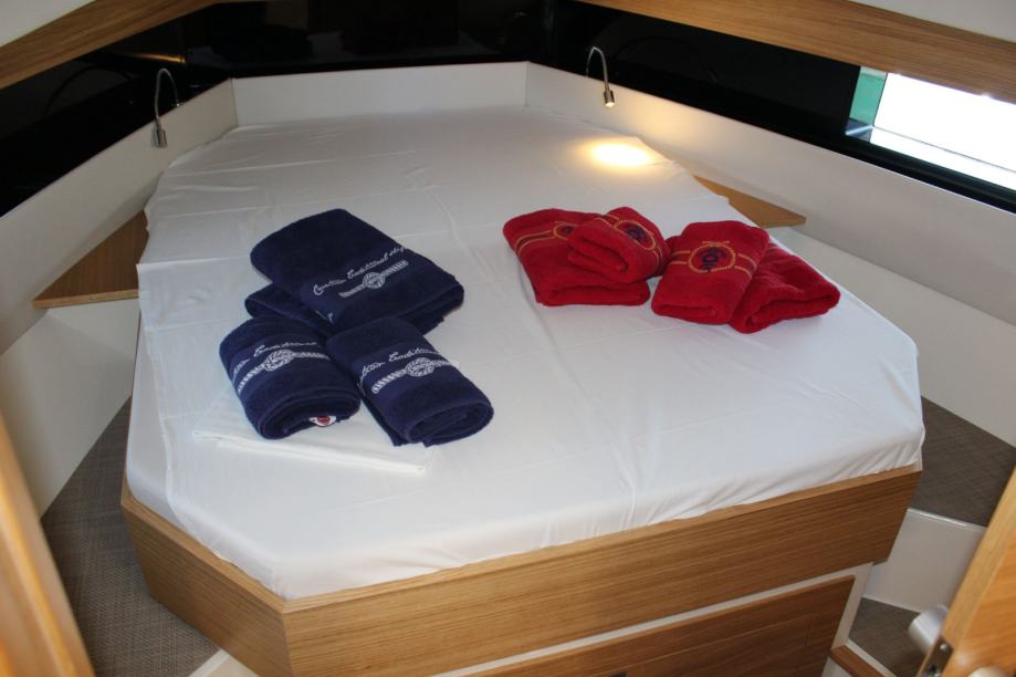 Stern cabin with U shape tiple bed (250 x 300 x 250 cm)