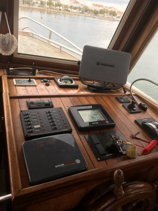 MO156K25 / 3200 cm3 / 90 kw / 122 KS sa kopčom ZF4545A i novi prilagođeni propeler. Elektroničko upravljanje: STEYR Control Center SCC. paluba (tikovina) , kabina (mahagoni) i prozori su komplet obnovljeni 2014.god.
