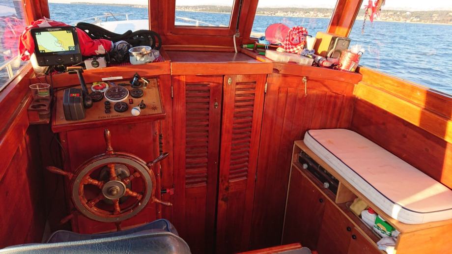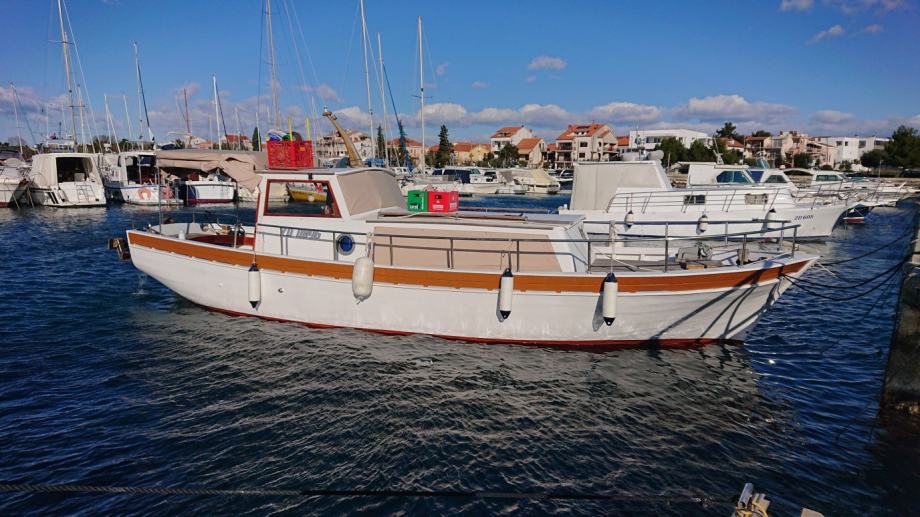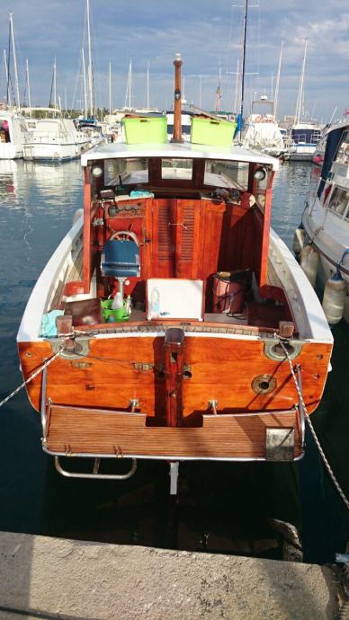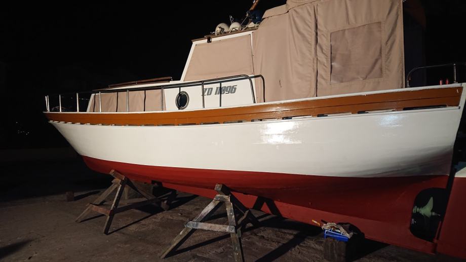 Drveni brod dužine 9 metara, restauriran prije 4 godine, od opreme inox ograda, platforma(s skalama i nosacem za pentu) novi prozori i sjenice, vinč na provi, gps, sonder, webasto, kuhinja s sudoperom, tuš na krmi,motor mercedes 4 cilindra, hidraulicna kopča, putna brzina 6.5 milja, škver napravljen u prosincu 2018.(pali, vozi) vrijedi pogledati!