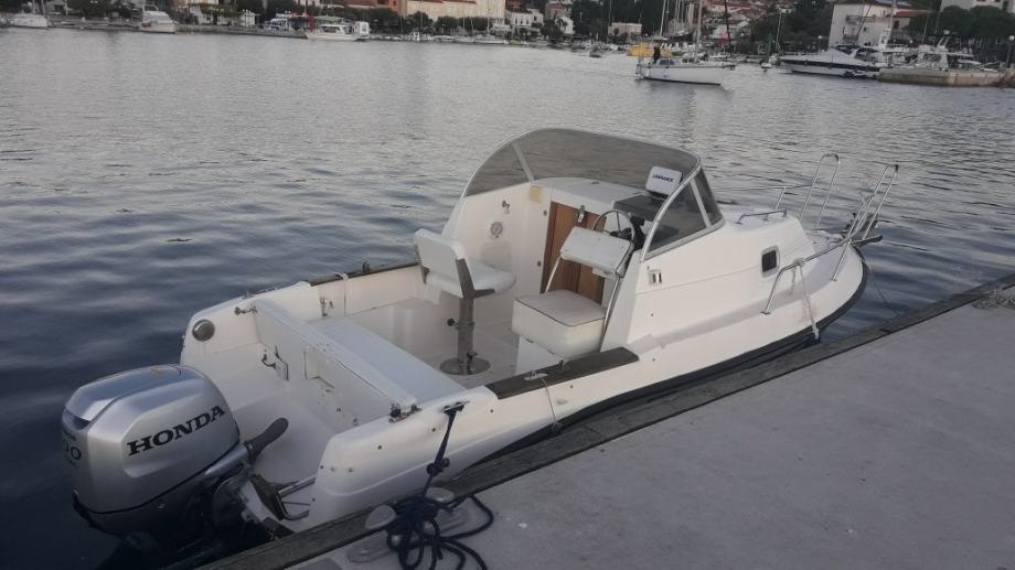 Prodajem Elan 18 cabin urednog stanja. Honda 100 Bf 2018 godiste - garancija do proljeća 2023. Putna brzina 20 milja uz potrošnju 16 l/h. max 30 milja. 2018. uz novi motor stavljene su i nove el. instalacije, pumpe kaljuže i vode, dva nova akumulatora. Lowrence 9 inčni gps s kartom Jadrana i sondom za ribolov. Ljetna bimini tenda kojom se može u potpunosti zatvoriti kokpit u stajaćoj visini + zimska tenda. Dva tanka goriva 82l i 50l, tank vode 100l. Pomoćni motor Yamaha 4 nije u najboljem stanju, ne moze raditi na minimumu. Ostala oprema: Radio sa zvučnicima, skije, sidra, bokobrani, konopi... Obavezno i kasko osiguranje do 7/2020. Gliser je u Kostreni, lucica Stara Voda i moze se isprobati bilo kad
