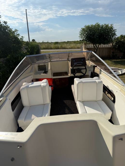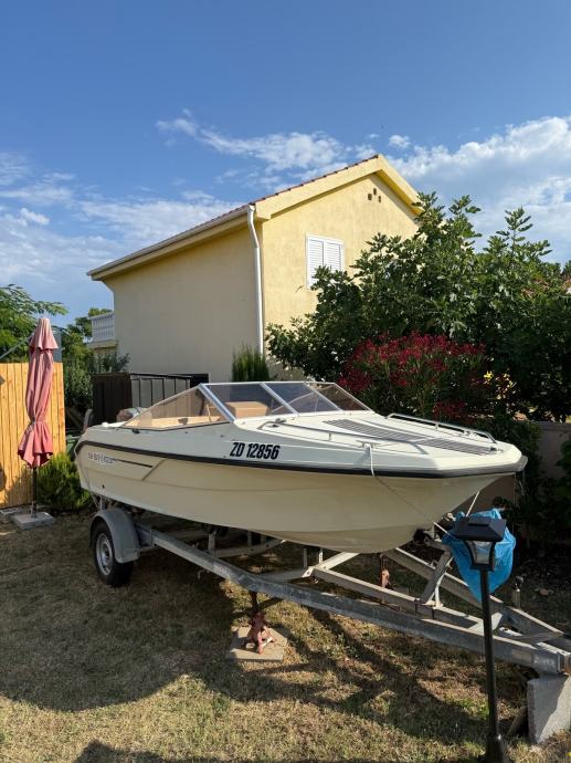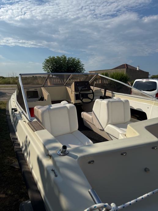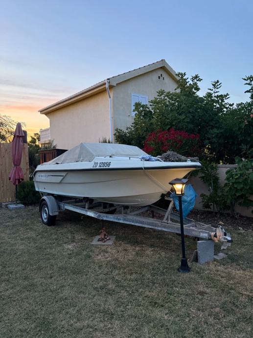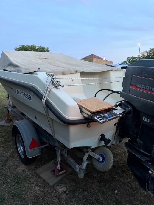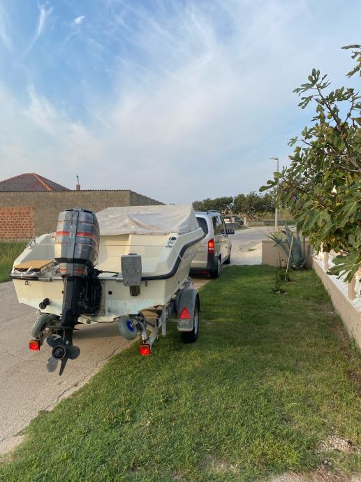 Čamac je u vlasništvu naše obitelji više od 20 godina. Godina proizvodnje 1989., s prikolicom marke Harbeck bez registracije za cestu (ali može se registrirati). Čamac je registriran i osiguran.