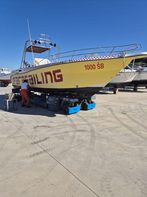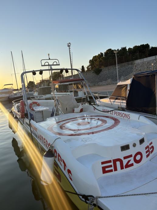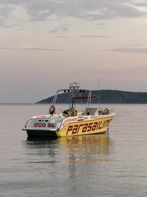 Prodaje se brod kao nov sa kompletnom opremom za vuču padobrana i svih gumenih tuba te za turistički prijevoz putnika. U ovu cijenu uključen je i jet ski Yamaha EX 2017 god. sa 500 radnih sati i Yamaha VX 2018 god. sa 750 radnih sati ali možete kupiti i bez skutera po cijeni 87000€ neto.Brod je opremljen engleskom hidraulikom, dva rezervara za naftu ukupne zapremnine 500l.,kvalitetni muzički razglas sa pojačalom i subuferom, rezervar za hidrauliku od 120l, boat traster, v drive, motor cummins qsb 5.9 330 konjskih snaga, rezervna nova propela za brod s 4 oštrice Michigen, rezervni aftercooler kao novi(on sam novi košta u cumminsa 8000€ +pdv), razdjeljni ventil hidraulike za dizanje i spuštanje padobrana,novo rezervno vitlo sa slagalicom i novi rezervni alnaser,460 metara konopa od 10mm(ako je konop od 8mm može stati 550 metara), novi rezervni ne korišteni konop od 10mm 460m,tri padobrana od 32ft,34ft i 38ft, tri šipke i 26 sjedalica raznih veličina. Uz sve gore navedeno ide i jedan crazy ufo za 8 osoba. Oglašena cijena je za brod i svu navedenu opremu.