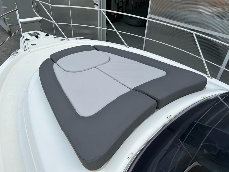 Bimini top + sprayhood koji je spojen sa radarskim lukom i zatvara kormilarnicu u slučaju loših vremenskih uvijeta , krmeni bimini iznad sunčališta ,originalna zimska tenda koja zatvara brod preko vjetrobrana do zadnje platforme.Plovilo je doslovno perfektno , opremljeno do zadnjeg detalja , iznimno očuvano , motor i strojarnica su u stanju novog i sve je upravo servisirano i konzervirano.