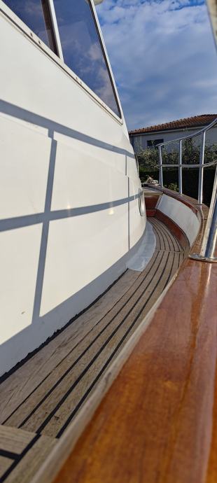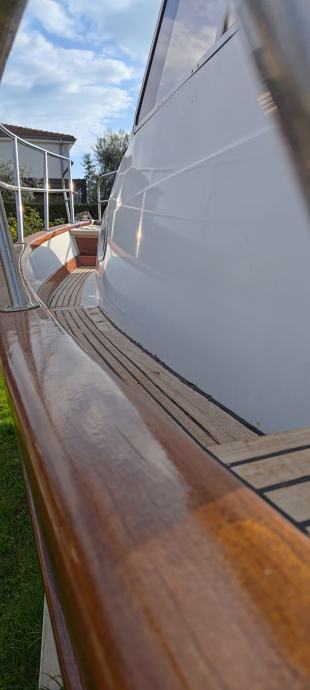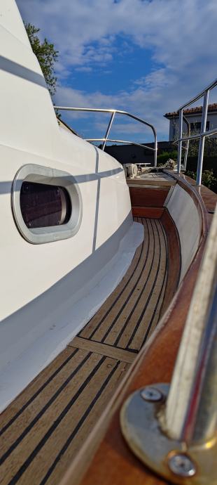 Iznimno stabilan brod, iznimnih maritimnih sposobnosti i isealan za boravak na moru.Samogradnja. Trup izrazito cvrst. 9 slojeva stakloplastika.