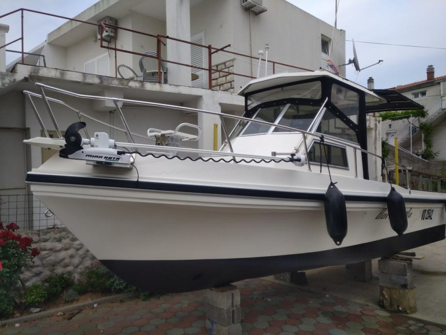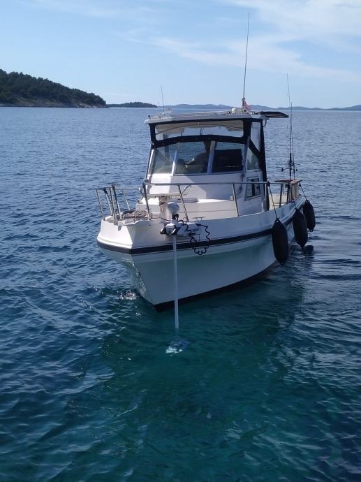 Talijanski robusni kvalitetno građeni fisherman u vrhunskom stanju.Motor vm 6 cilindara 220hp direktni prenos(osovinski vod)u bez prijekornom stanju.Troling ventil,sonder furuno navnet 3d 12inc.,sonda 1000w.radio,vhf stanica,minnkota 112,72 36v Sa novim akumulatorima i jakim solarnim panelima 360w,regulator punjena solara sa mogučnošču ponjenja dvije grupe akumulatora 12 ili 36,stolica za ribolov,nova tenda+bokovi za zimu koji nisu na slici,elektricni wc webasto grijanje mini kuhinja sa kuhalom i lavandinom,tuš na krmi,bow thruster,hidraulicki flapsovi Rezervari za naftu 200l,za vodu 50l,prije mj.dana montirana umjetna tvrda tikovina,itd..