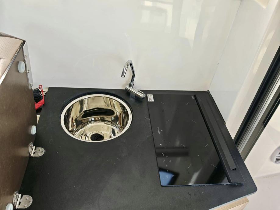 Interijer natkabine s blok kuhinjom(gornji dio prekriven crnim Compact materijalom)