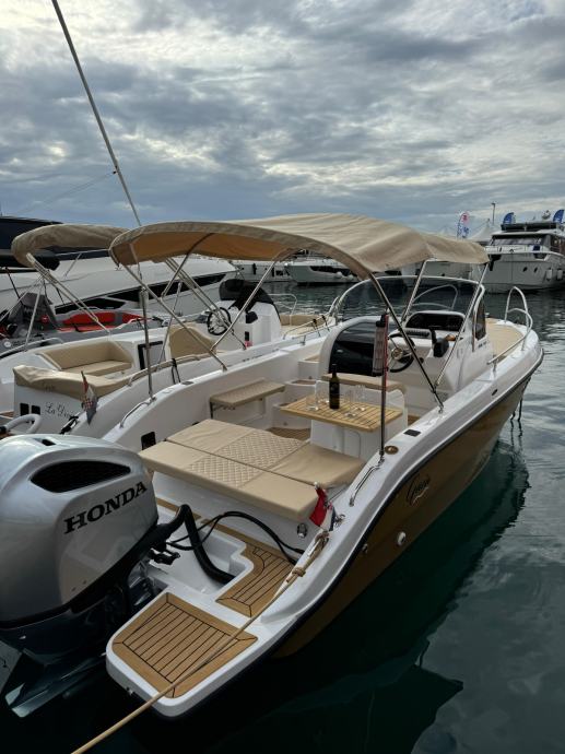Gaia 22 Walkaround – savršen spoj prostora, praktičnosti i elegancije za svakodnevne avanture na vodi. S dužinom od 6,68 metara i kapacitetom od 8 osoba, ova barka nudi stabilnost i udobnost uz izvanrednu opremu. Izrađena od izdržljive ISO stakloplastike, s maksimalnom snagom motora do 250 KS, Gaia 22 Walkaround pruža sigurnu i ugodnu plovidbu u svim uvjetima.