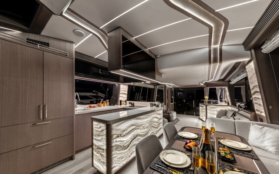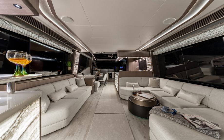 U cijenu je uključena pripadajuća STD oprema prema specifikaciji modela plovila 2024 sa 2x MAN V12-1650.