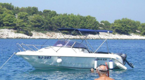 Galeon Galia 630 Cruiser, 2001 g. , motor Yamaha 115 KS - 4T, kabina 2 + 1 ležaj, redovito servisiran, 11 - 12 mjeseci u garaži, Bimini tenda, GPS, prikolica, potpuno opremljen, trajno registriran, povoljno prodajem.