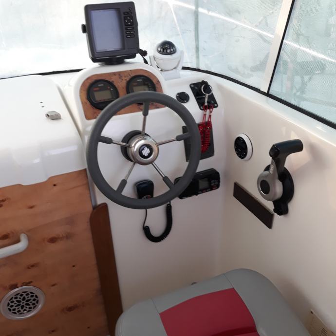 Brod je maksimalno ocuvan i malo koristen.Odlican na moru.Putna 17,max 26nm.Ima Yamahu 60ks sa 400h rada(nikad nije radila u max okretajima),napravljen servis.Od opreme ima Garmin eco500s,radio stanicu,brodski radio,kompas,nosaci za stapove,tus,pumpa za zivu ljesku,smrk za pranje broda,nosac za pomocni motor,ljestve,led rasvjeta i jos dosta toga.Bez ulaganja.
