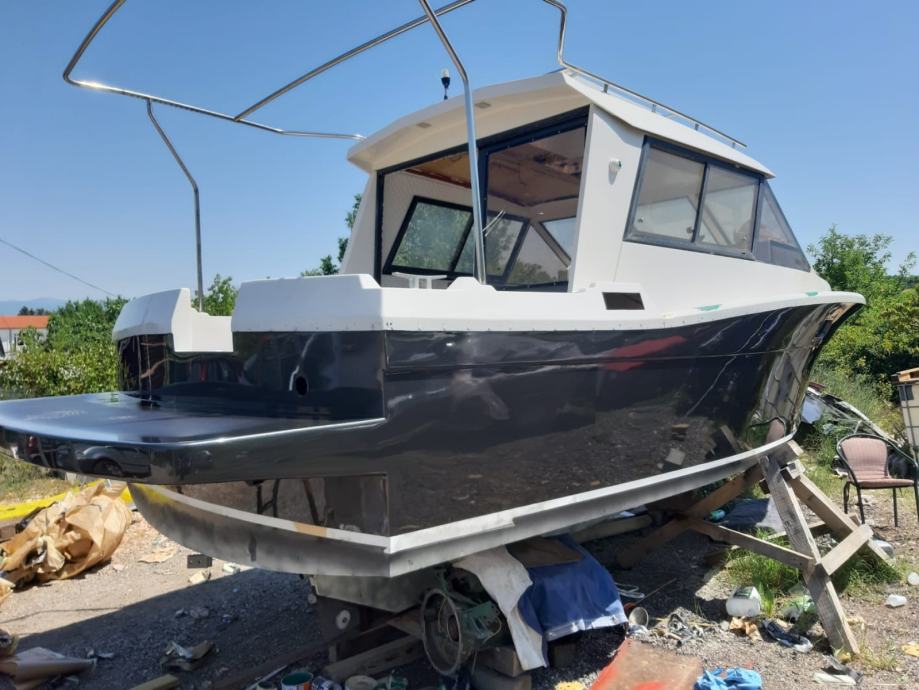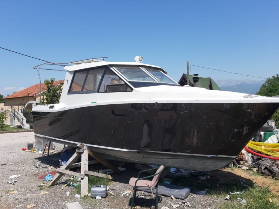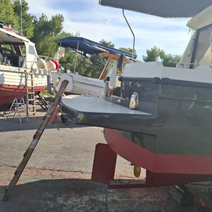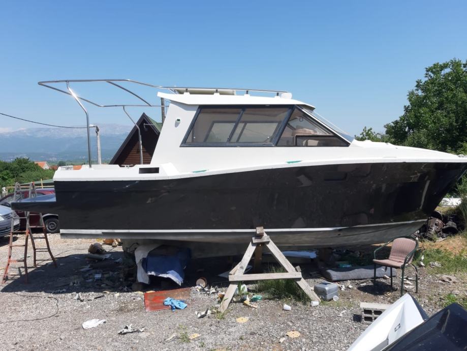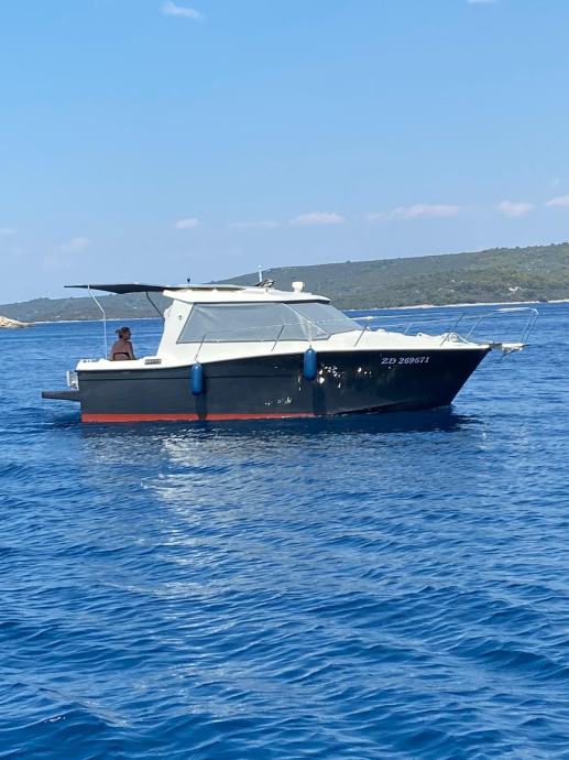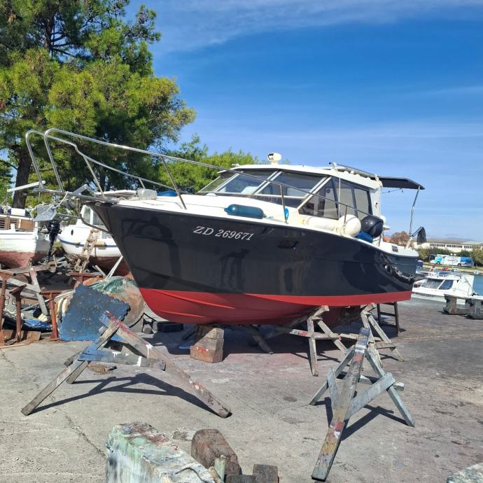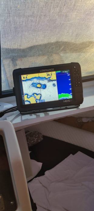 Oprema:lovrance hds 9 sa 600w airmar sondom po trupu,solari 300w,Motorguide 80lbs 24v,autopilot nov,vebasto grijanje,reflector,radio sa zvucnicima,wc morski,morska pumpa,voda sa tusem na krmi,Bimini tenda,velika krmena platforma,puno prikljucaka za struju i USB,brod je sjajan na moru,mali potrosac.