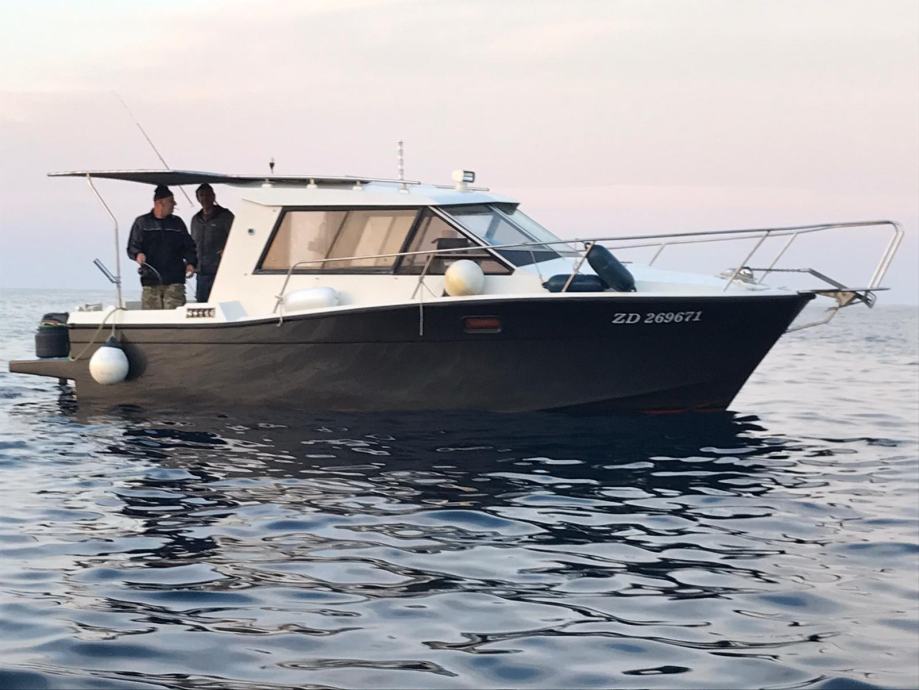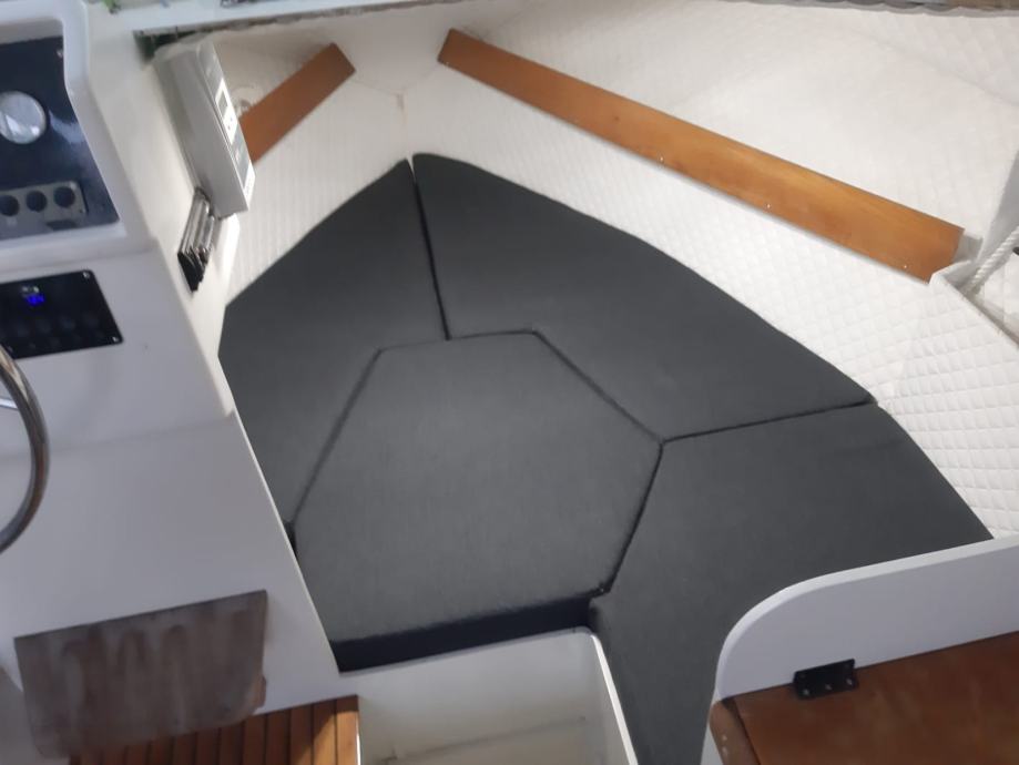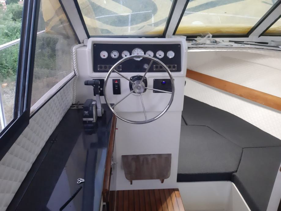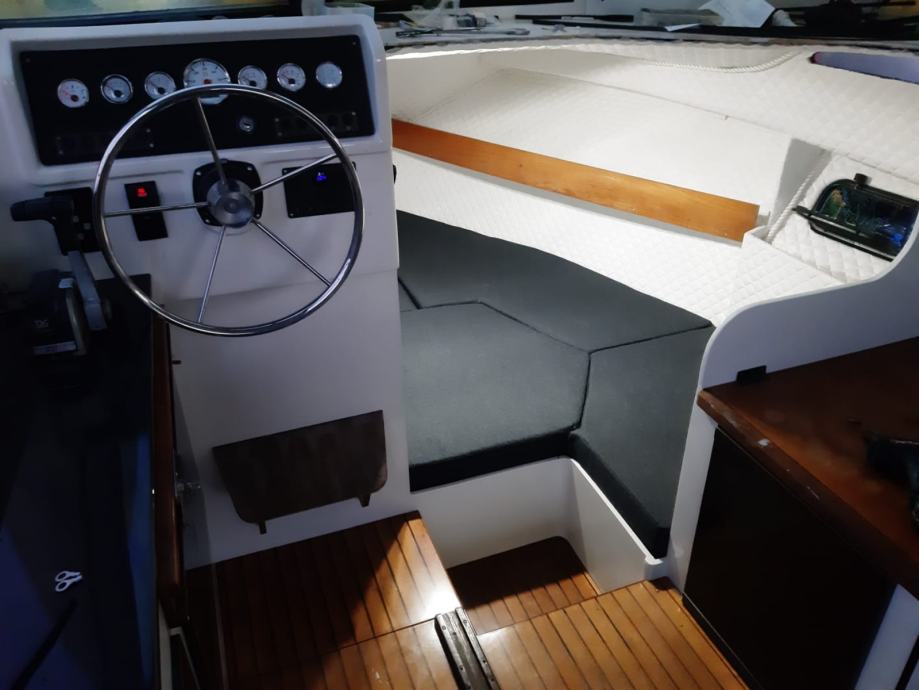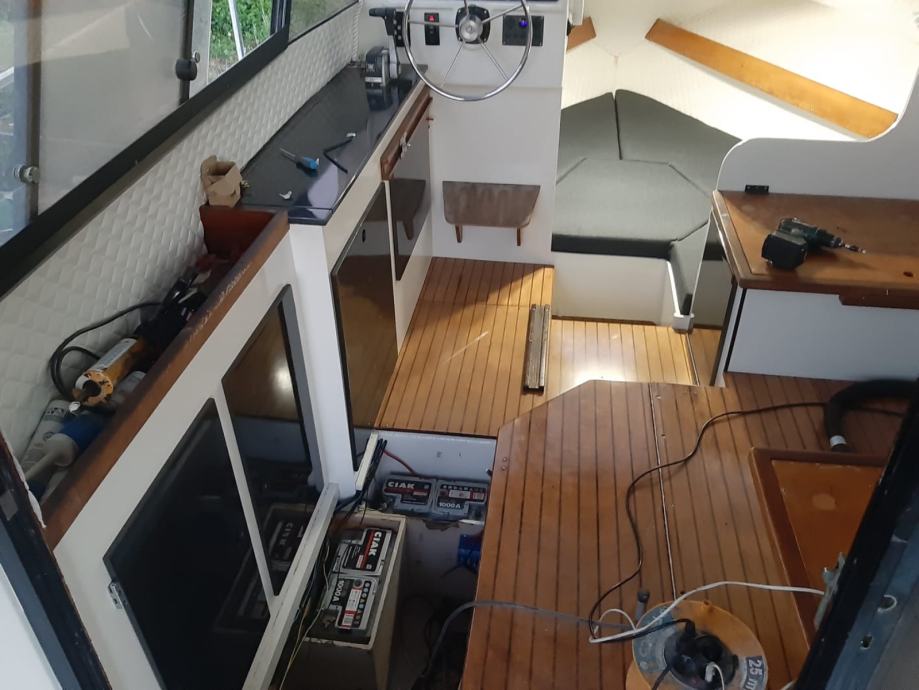 Oprema:lovrance hds 9 sa 600w airmar sondom po trupu,solari 300w,Motorguide 80lbs 24v,autopilot nov,vebasto grijanje,reflector,radio sa zvucnicima,wc morski,morska pumpa,voda sa tusem na krmi,Bimini tenda,velika krmena platforma,puno prikljucaka za struju i USB,brod je sjajan na moru,mali potrosac.
