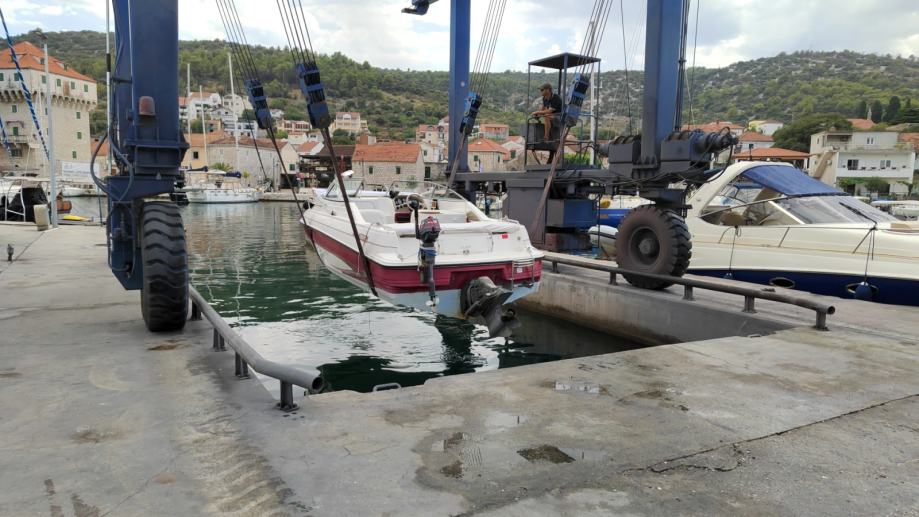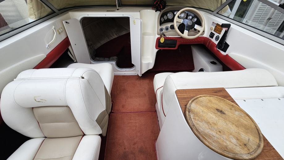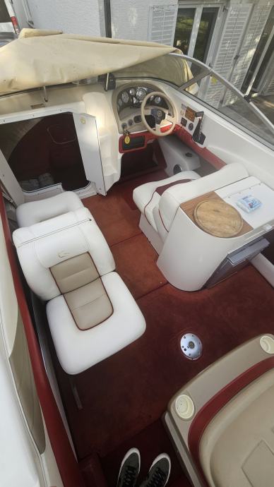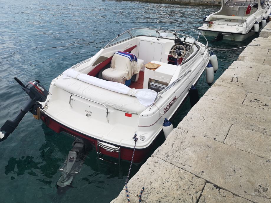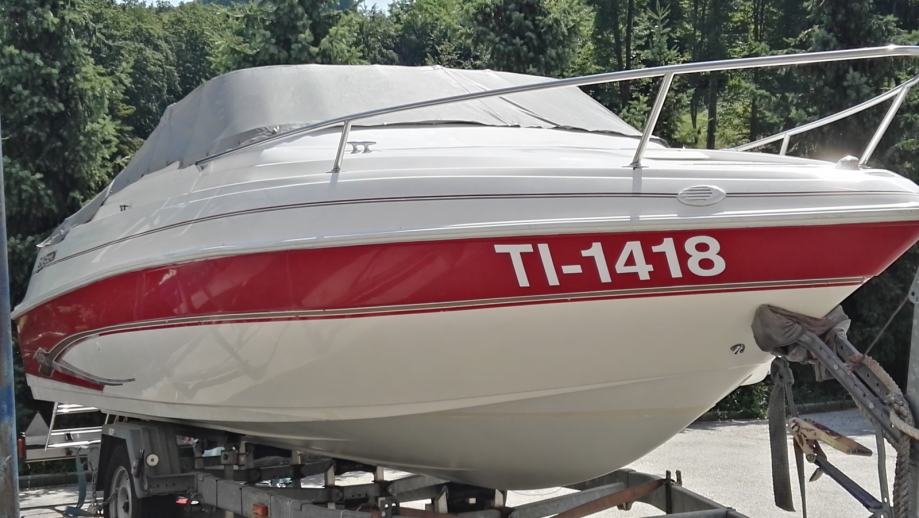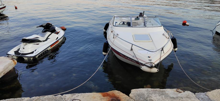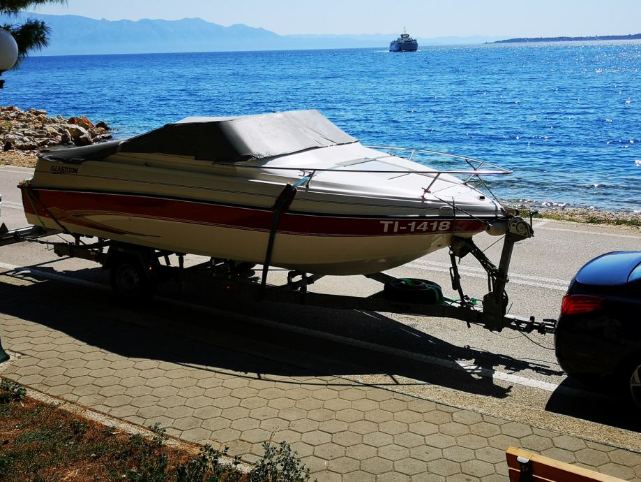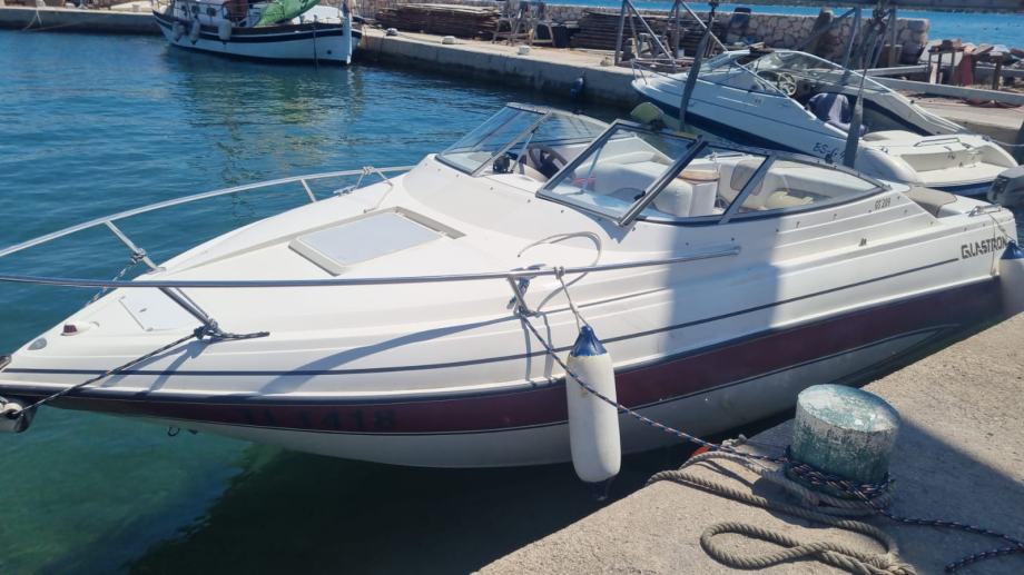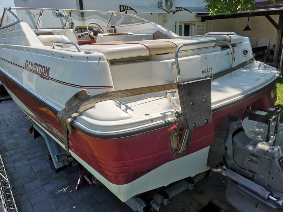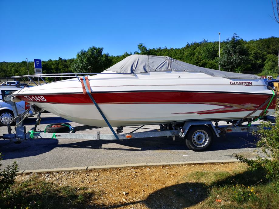 Gliser Glastron 209 GS, volvo penta 4,3, 140KW, noga SX, trailer Ellebi (nosivost 1500kg) reg. do srpnja 2026.. Glastron 1998. je u vlasništvu od 2014. godine, kao i trailer. U odličnom je stanju, vožen 3 tjedna u sezoni, svake godine servis, konzervacija, svake 3 godine samopolirajući premaz, nove naljepnice, poliranje svake 4 godine, nema tragova oštećenja, pažen i mažen. Vođena je knjiga servisa koju dajem uz plovilo. Dodatno Yamaha 3,5 ks pomoćni motor (radio možda nekoliko puta), cerade: ljetna, zimska i bimini tenda. Od opreme: 2 sidra, bokobrani, novi frižider, kuhalo, tepisi, tuš, slatka voda 30L, novi akumulatori, wc prijenosni, navlake za sjedala i kabinu, garmin navigacija (ugrađena 2025. godine - dodatno!) i još puno toga.