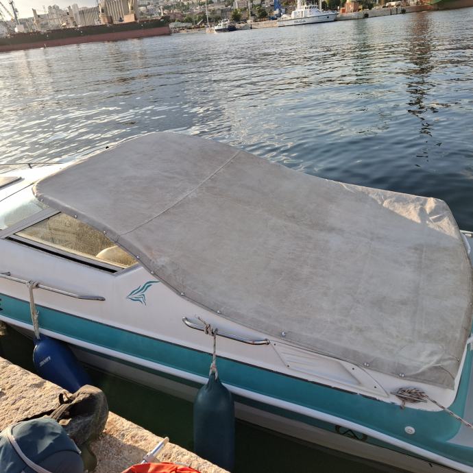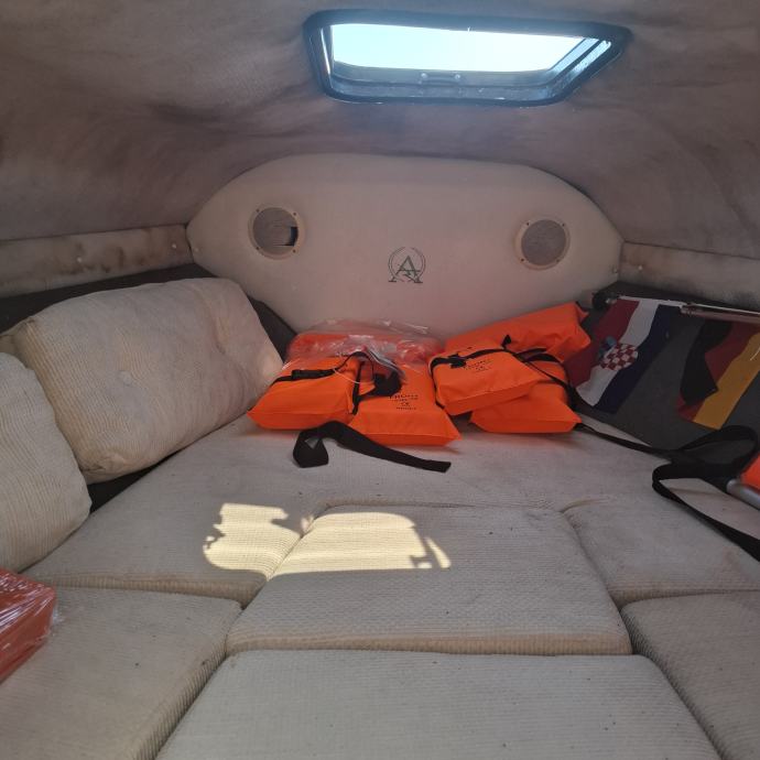 Od opreme: tenda protiv kiše, zimska "kabina" tenda, duplo sidro, 7 bova, stol, teleskopska sjedala, konopi, sva obavezna oprema, rezervna potrošna roba (razvodna kapa i ruka, svjećice, i sl.)...