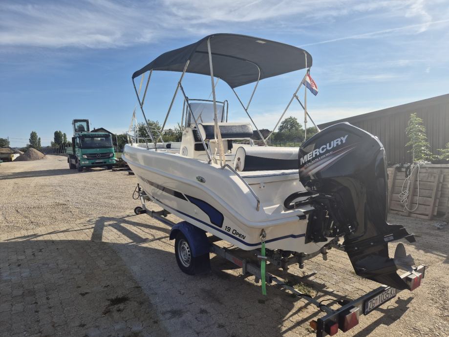 Gliser Open, 2018. G., 5.5m, Mercury 100 ks, 97 rh, napravljen servis, nove sajle, ugrađen krmeni tuš, novi AGM akumulator, bimini tenda, 2. Vlasnik,zamijene iskljucene!!!