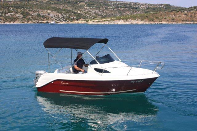 OSNOVNA OPREMA: Bokoštitnik, prozori, vrata, vjetrobran, komplet jastuka, bitve, očni vijak, , ojačanje za motor, sidreno spremište,volan sa sajlom i pužnjakom,svjetlo u kabini, kaljužna pumpa, navigacijska svjetla.
