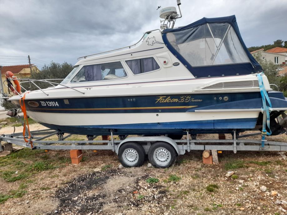Zbog zdrastvenih rzloga teskom mukom prodajem mojeg ljubimca Gliser sa kabinom norveska proizvodnja"BELLA BOATS FALCON FANTINO 26".Plovilo je u izvanrednom stanju,registriran za 8 osoba, ugradjena nova Turbina prominjeni novi ventili,Serviisirana noga ,nove baterije,servisiran traster ukupna ivesticija ca:5.000,00€.Plovilo je foul oprema,Traster,El.Vinc sa ca 50m.lanca,Radar sa navigacijiom,radio , radio stanica,kompas,frizider,solar itd.Plovilo nikad nije bilo u Carteru ja sam treci vlasnik.MotorCummins MerCruiser Disel type D 2,8L 200KS Z noga bravo3.Brzina ca 36ML potrosnja ca:1 lit.Po milji.Tank goriva ca:200lit.Vode ca:80Lit i FEkalija ca:50Lit.Plovilo je spremno u svako doba za .isplovljavanje,pogledati se moze svaki dan po dogovoru i probna voznja takodjer.Po zelji i treiler-odgovarajuca prikolica 3,5T po zelji moze se otkupiti i momentano se moze zadrzati vez po dogovoru uz doplatu,cjena po dogovoru.Po zelji moze se i otkupiti vanbrodski motor penta Yamacha 5KS cetverotaktni duga osovina sa rezervnim tankom goriva 12Lit.Penta je 100post servisirana i ispravna bez papira penta "SAMO OZBILJNE PONUDE"Prodaja iskljucivo iz zdrastvenih razloga.Cjena snizena ca:50%ispod standardne cjene u Njemackoj,Svicarskoj,Balticnim i Skandinavskim zemljama. O cjeni se jos moze razgovarati,postoji mogucnost koristenje veza po dogovoru.Zelim samo da plovio plovi i da vlasnik uziva kad nazalost nemogu ja sa svojom suprugom.Slobodna nagodba ali ne nize od 25.000,00€
