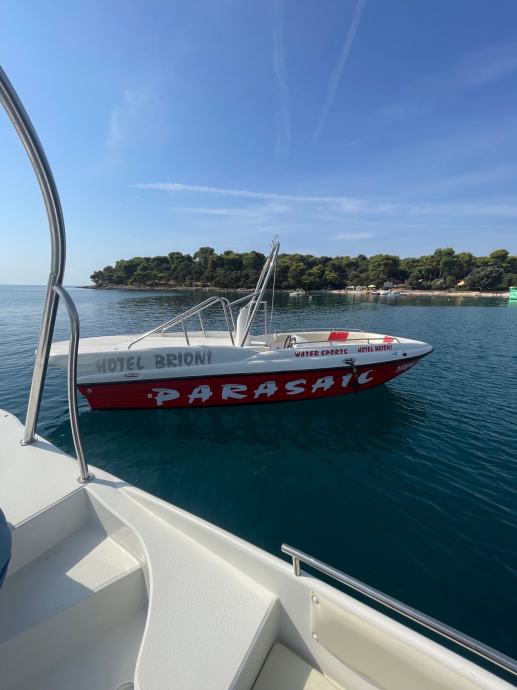 Gliser za vucu padobrana sa motorom Yanmar 6lp 315 ks i nogom mercriser Bravo 3x , motor stavljen prije sezone sa 320 sati rada, sada ima 570 radnih sati , vitlo sa slagalicom i hidraulika nova prije sezone , registriran na prijevoz putnika ,gliser jos u radu te se moze probati prodajem za 39900€