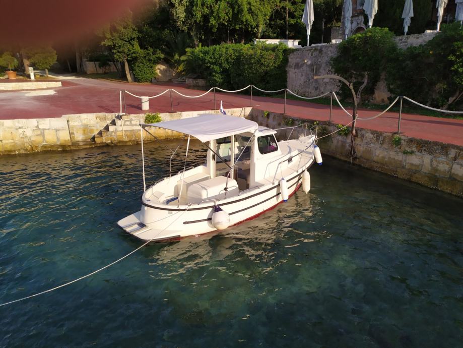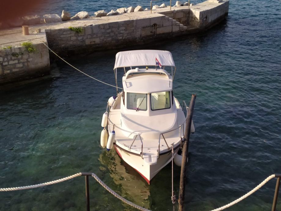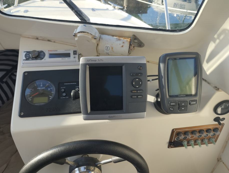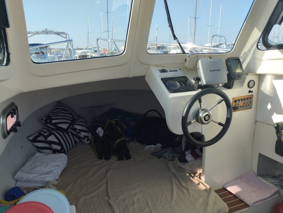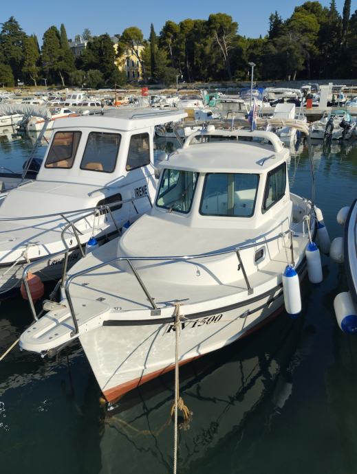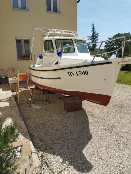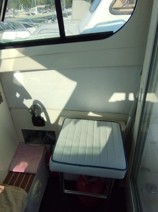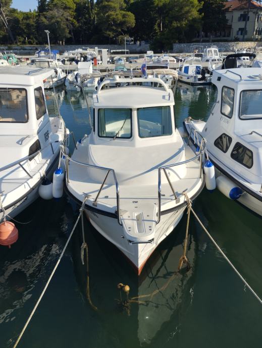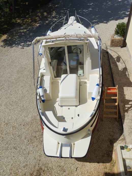 Hidraulično upravljanje, Troling ventil, rigola za upravljanje sa krme, radio, Garmin 521S,bimini top, tuš na krmi, sudoper, tank vode 60l, tank goriva 50lit, špirun sa ugrađenim inox ljestvama, platforma sa inox ljestvama, dužina vodene linije 5,80m , dužina preko svega 6,50m , širina 2,35