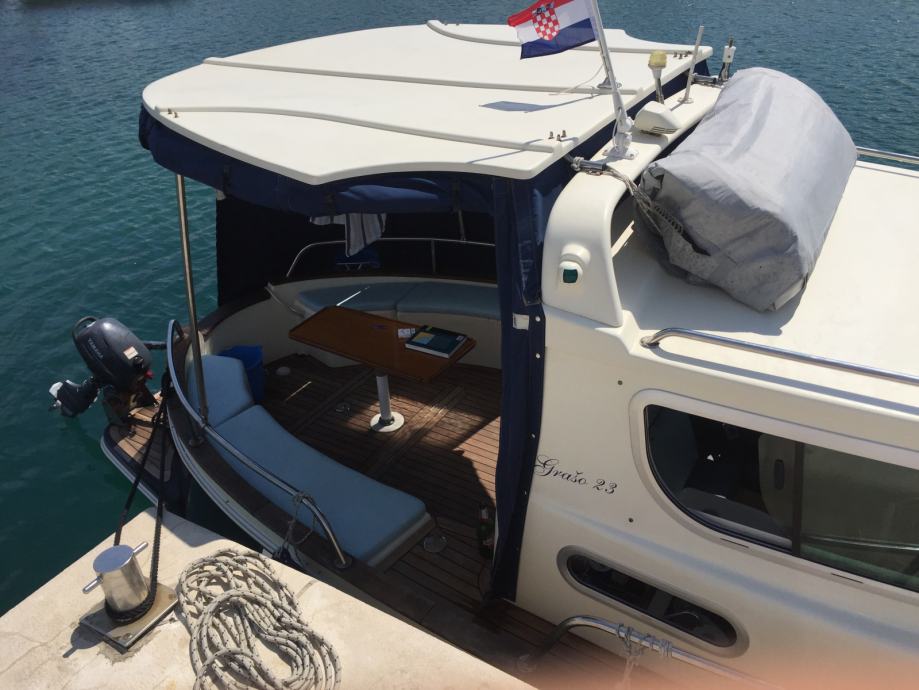 GRAŠO 23 - YANMAR 4JH3-Dte (125KS), 2008. g, 800 rh, tikovina, webasto, GPS/FF Garmin 720s, Vhf, Hard top, zimska tenda, gorivo 2 x 150, voda 1x100, tuš na krmi, troling ventil, ful oprema, el. winch za sidro (novo 2018) + 40m lanac, jastuci za sunčanje na kabini, jastuci na krmenim klupama, vrhunski održavan, 6 mjeseci zimski vez, nova zimska cerada krojena po mjeri (2017), novi akomulatori x 2 ,novi sidreni winch (2018.), HITNO prodajem. Cijena dogovor!!!