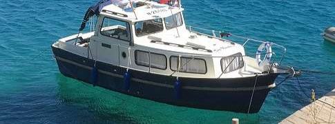 Odlican skandinavski brod,potpuno opremljen za plovidbu..dva volvo disel motora sa saildrive pogonom.redovno servisirani.potrosnja sa obadva 4 litre,wc,tus,eholot,el vinc,auto pilot,prikljucak struje,punjac baterija,tende.