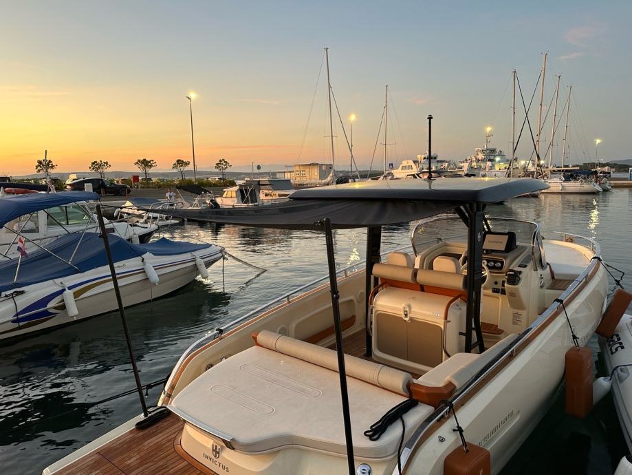 Invictus GT 280 , izuzetno ocuvan nije bio u charteru , hard top , straznja tenda , spavaca soba , kuhinja , wc, podvodna rasvjeta, navigacija , hladnjak , bow thruster , sva oprema , tvornicko jamstvo na cijeli brod i motor , 1 vlasnik , kupljen nov i malo koristen, u originalnom stanju, isporuka odmah sa svom opremom, moguca zamjena za manje plovilo gliser za osobni auto novije proizvodnje vozilo