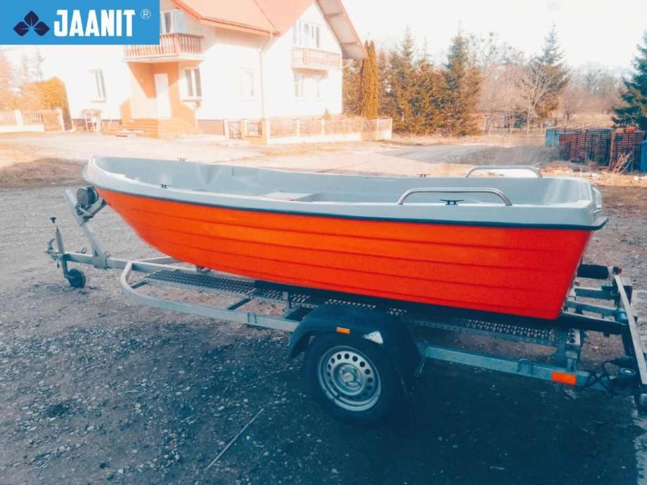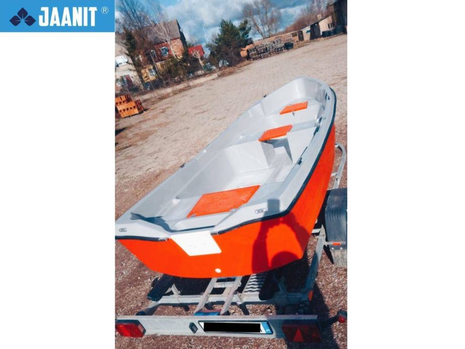 JAANIT 40 Open je dvostruki ribarski brod dug 4 metra. Najveće prednosti uključuju prostranu palubu, izvrsnu stabilnost na vodi, visoke stranice i vrlo velike ormariće (mogućnost dodavanja središnjeg ormarića koji se može ukloniti i dodatnih ormarića). Čamac će biti pogodan i za rekreaciju, kako s motorom s unutarnjim izgaranjem tako i s elektromotorom te veslanje. Provjeren i dobro osmišljen dizajn koji već godinama koriste ribari u Poljskoj i Europi. Osnovna oprema: 2 prostrana ormarića Okov od nehrđajućeg čelika 3 kuke od nehrđajućeg čelika Brave za vesla 4 klina Krmeni štitnik bokobrana s krajevima od nehrđajućeg čelika Osnovne boje: paluba RAL 9010 (bijela) + trup RAL 9010 (bijela) ili RAL 5004 (mornarsko plava)