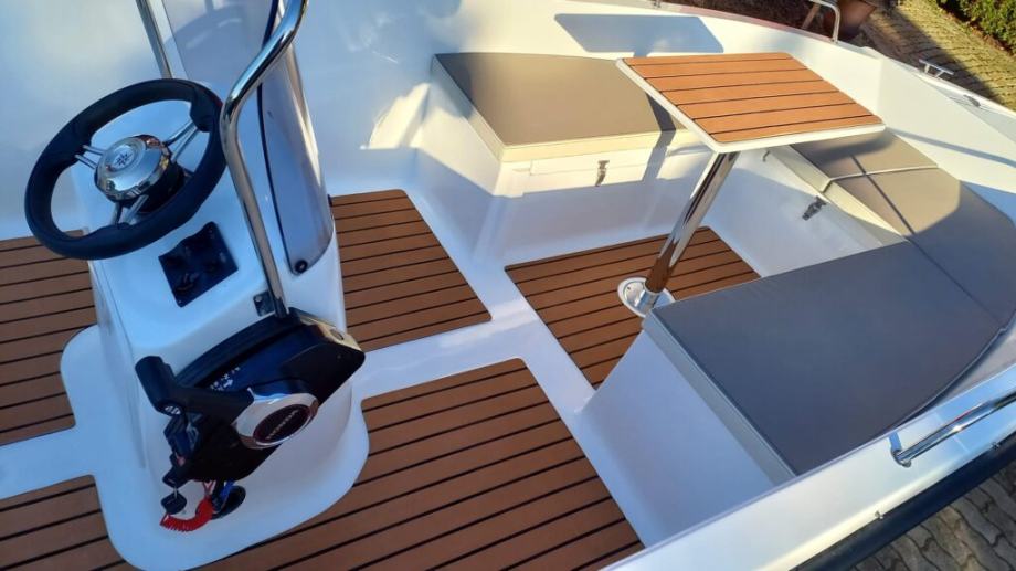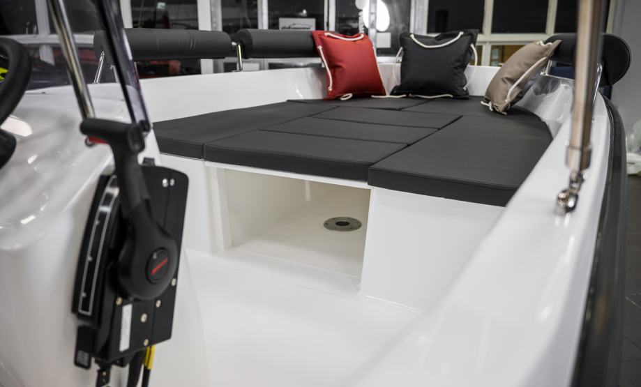 Zahvaljujući ergonomskom dizajnu i ekonomičnoj prilagodbi prostora konzole s prostorom za kormilo, pruža potpunu slobodu kretanja na brodu. Sklopivi stol, koji se nalazi u pramčanom dijelu palube, može se u svakom trenutku preklopiti, sakriti u stražnjim ormarićima, a pramčana sjedala se mogu pretvoriti u mini solarij uz pomoć nekih vrlo izdržljivih i laganih elementi. Jedinica je opremljena s čak 5 ormarića u koje možete pohraniti cijeli piknik arsenal ili, ovisno o vašim potrebama: varalice, plovke, udice, spinnere, tanjure i mnoge druge.