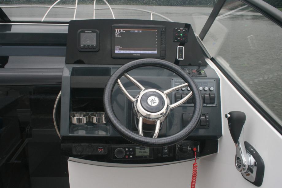 Plovilo upotpunjuje udoban i veliki kokpit s ležaljkom, a iza duplog vozačkog sjedala nalazi se udobna sofa