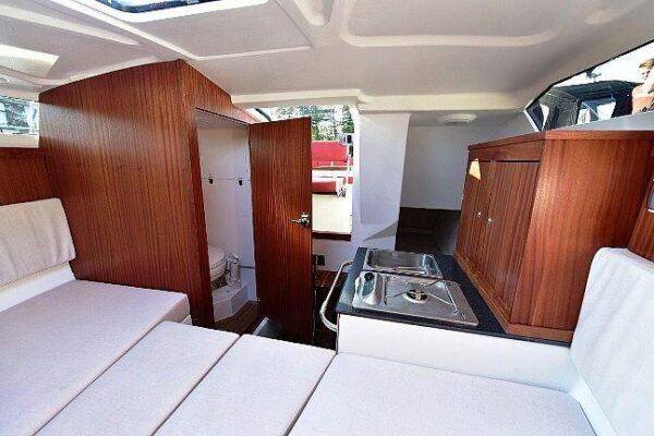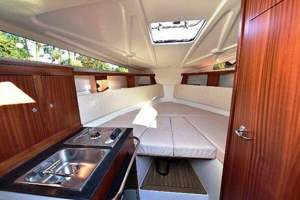 Plovilo upotpunjuje udoban i veliki kokpit s ležaljkom, a iza duplog vozačkog sjedala nalazi se udobna sofa