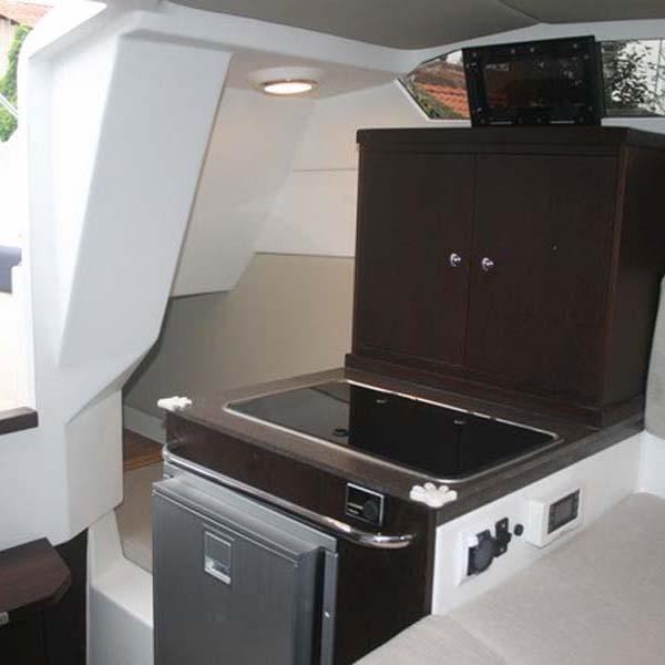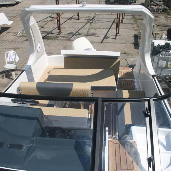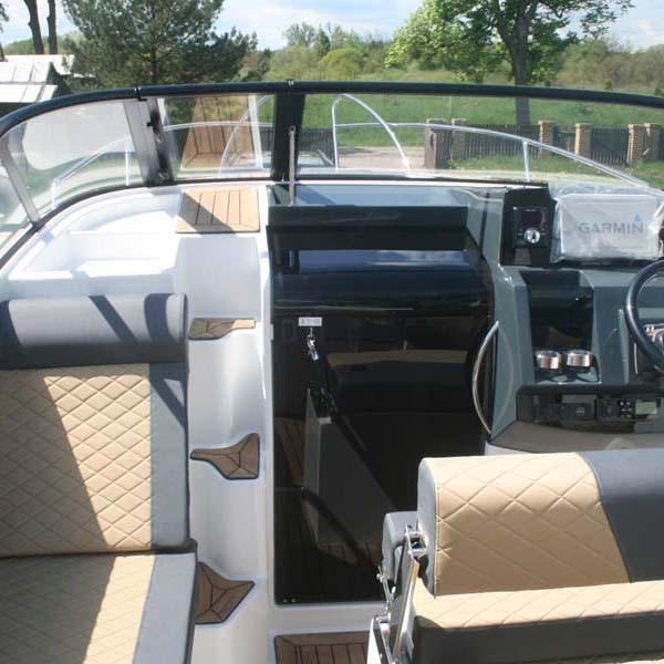 Plovilo upotpunjuje udoban i veliki kokpit s ležaljkom, a iza duplog vozačkog sjedala nalazi se udobna sofa