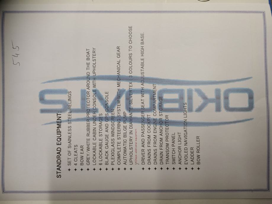 Na slici možete vidjeti službenu kompletnu standardnu opremu plovila Barracuda, proizvođača Okiboats.